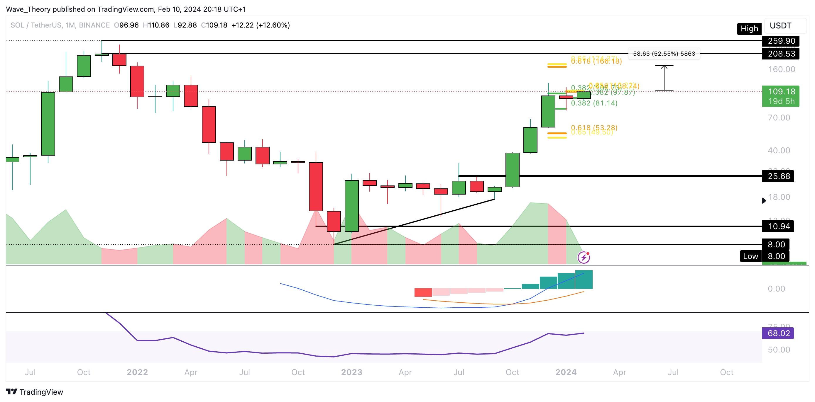 Im Monatschart zeigt sich der Solana Kurs nach wie vor extrem bullisch