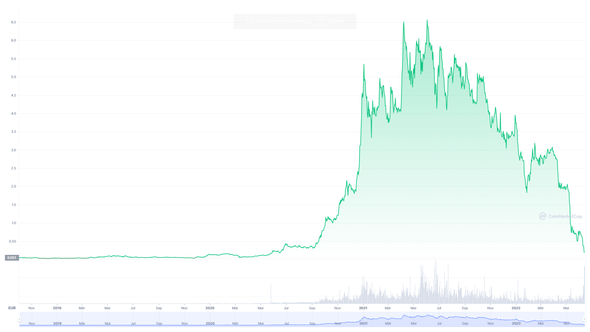 SponsoredDer Celsius Token Kurs ist am 13. Juni 2022 um 50 % gefallen und befindet sich aktuell rund 97 % unter dem letzten Allzeithoch und auf demselben Preis-Niveau wie im Mai 2020.