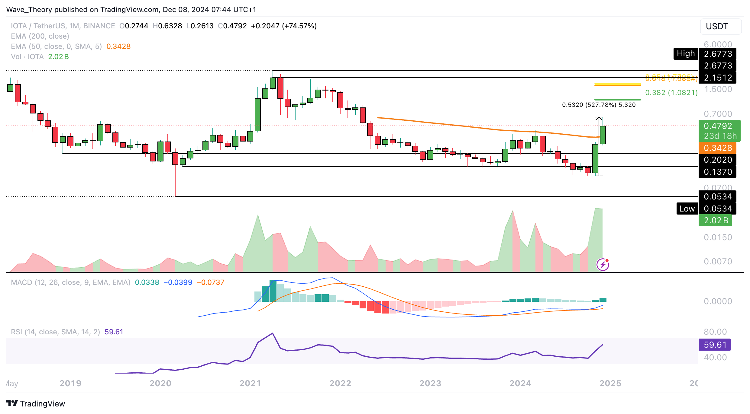 Der IOTA Kurs hat den 50-Monate-EMA Widerstand gebrochen