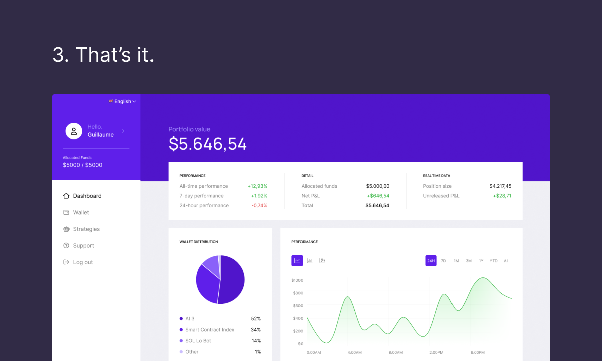- Transparenz: Der gesamte Prozess ist transparent, und die Nutzer können alles von ihrem Dashboard aus verfolgen. Der gesamte Prozess wird beschleunigt, indem den Händlern jede einzelne Strategie deutlich erklärt wird.
