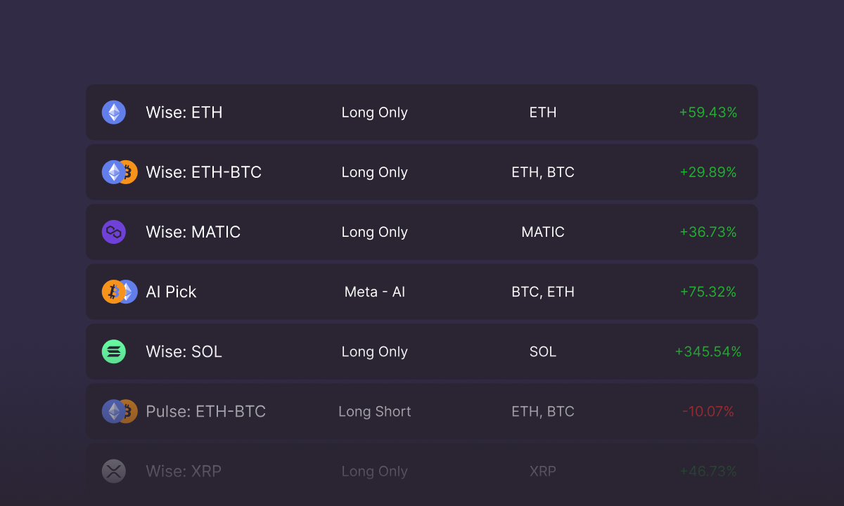 - Verschiedene Strategien: Die Plattform bietet verschiedene Strategien, darunter Smarte-Hold-Strategien (Wise), dynamischere Strategien (Pulse) und Strategien mit künstlicher Intelligenz (AI). Das Team plant die Plattform bald, um weitere Dynamik-Indizes zu erweitern.