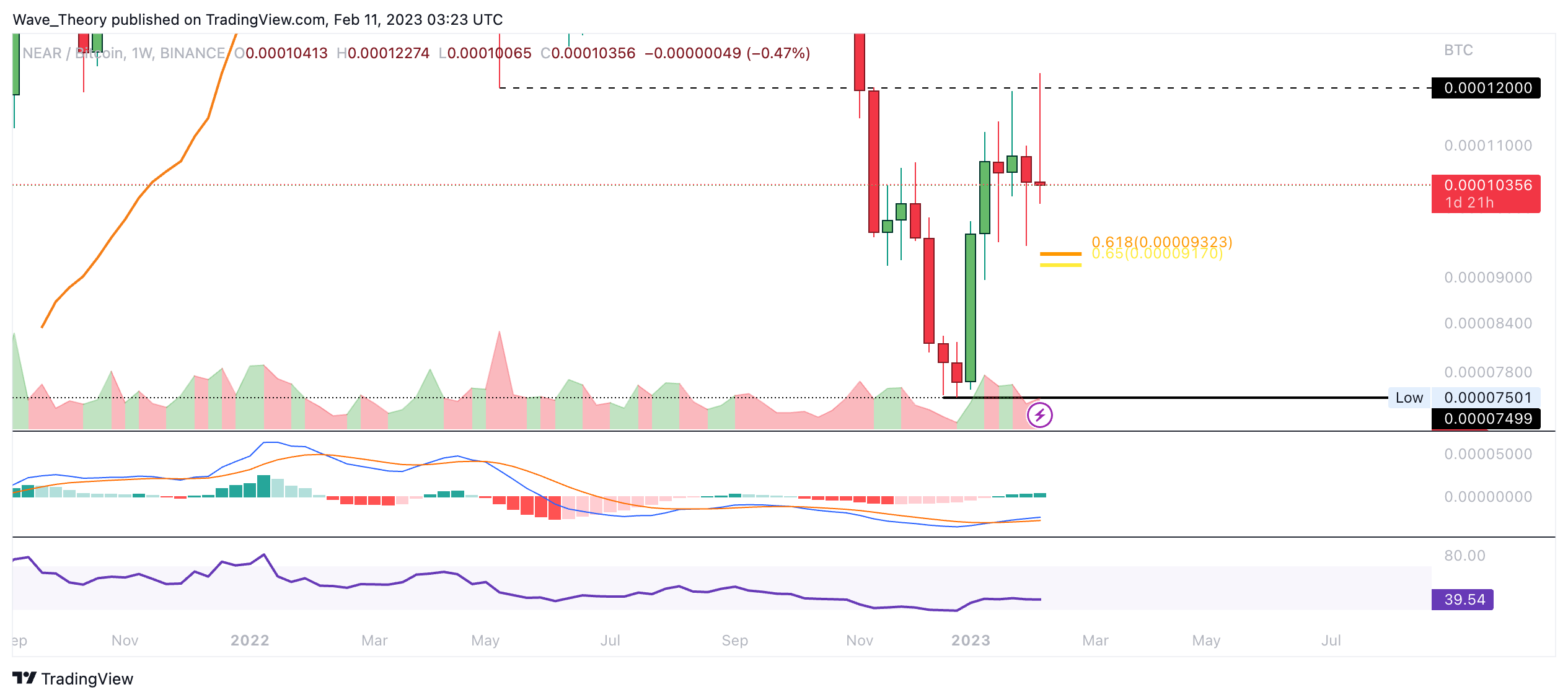 Auch gegen BTC scheint der NEAR Kurs eine Korrektur einzuleiten