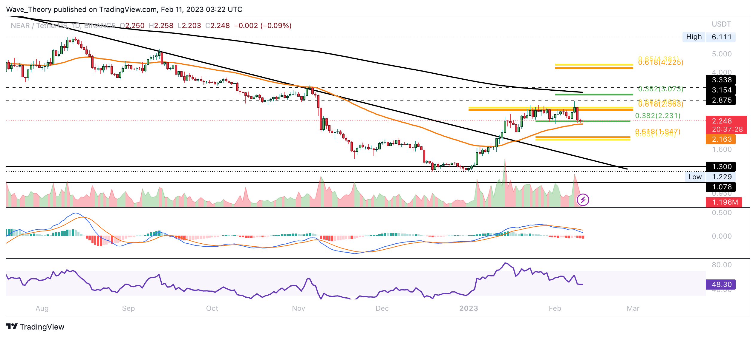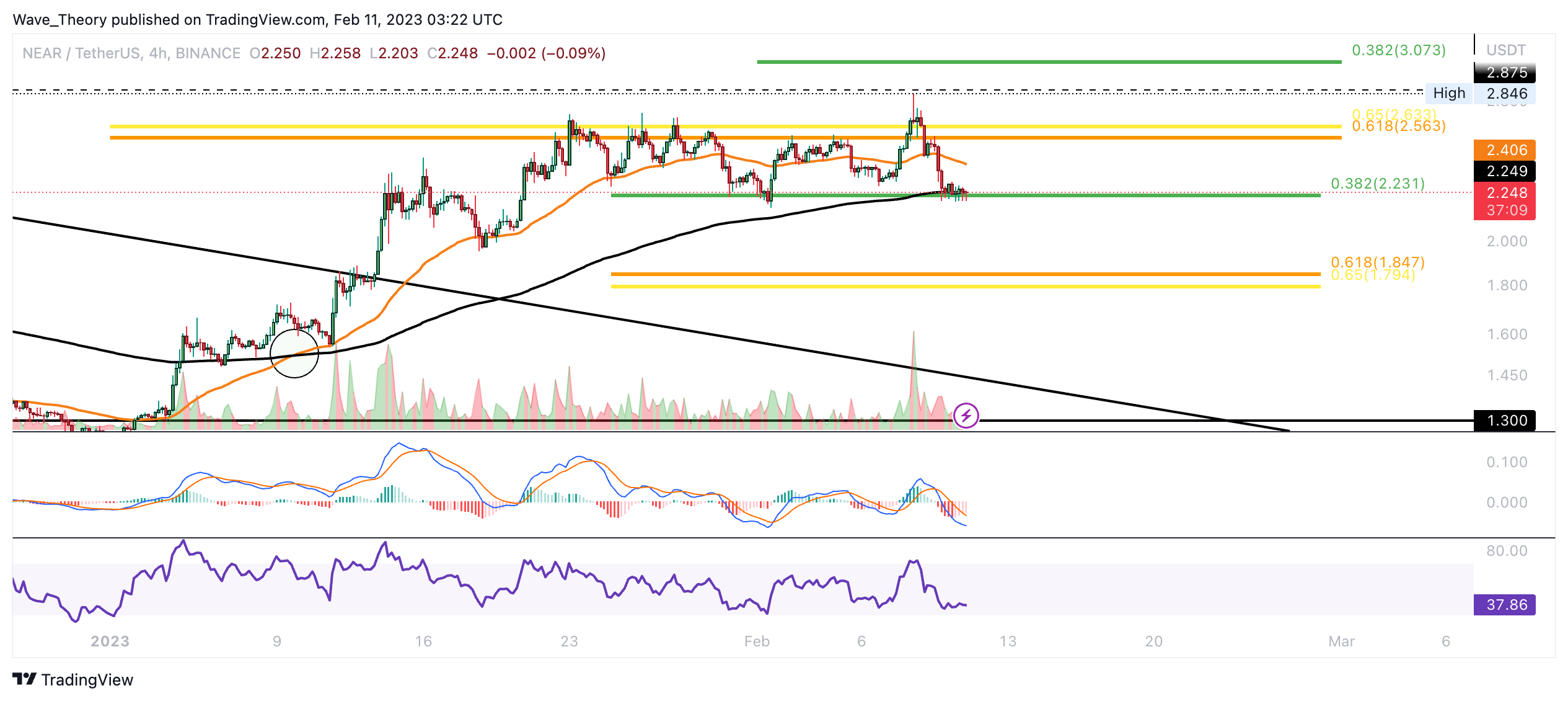 Damit findet Near Protocol jetzt bei rund 2,23 USD und bei rund 1,85 USD die nächsten signifikanten Fib Unterstützungen. Bei rund 2,163 USD fungiert der 50-Tage-EMA als zusätzliche Unterstützung.