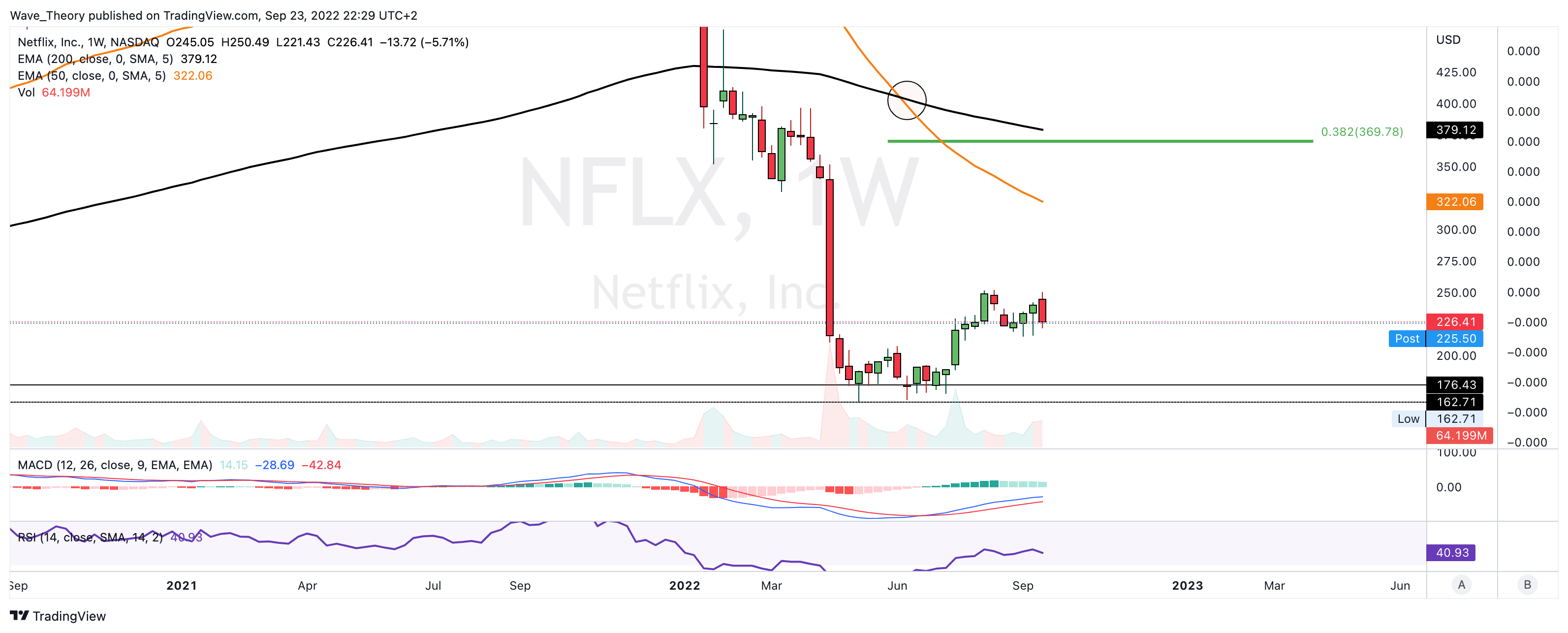 Seit dem ATH bei rund 701 USD ist die Netflix Aktie rund 77 % gefallen und damit sogar mehr als der Bitcoin Kurs!