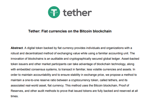 In diesem Beispiel können wir einige der Hauptmerkmale und die Beschreibung von Tether durch das Whitepaper herausfinden.