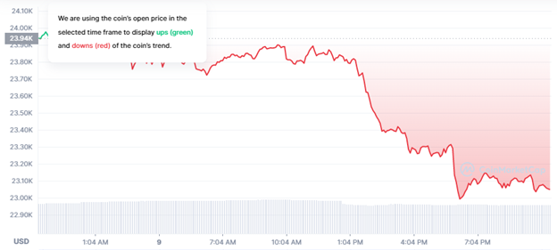 Anleger können die Entwicklung des Preises einer Kryptowährung im Laufe eines Tages zu verschiedenen Zeiten untersuchen. Hier ist der Wert von Bitcoin beispielsweise im Laufe der Stunden gesunken.