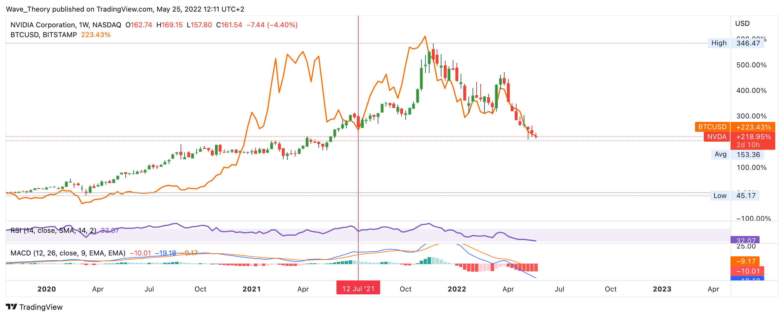 NVIDIA zeigt seit Juli 2021 starke Korrelation zum BTC Kurs