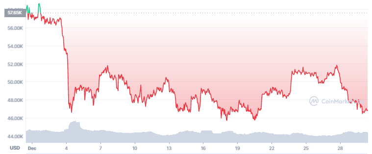 Momentan rangiert der Bitcoin Preis bei 46.000 US-Dollar und befindet sich schon seit Anfang Dezember in einer wenig aufregenden Seitwärtsbewegung.