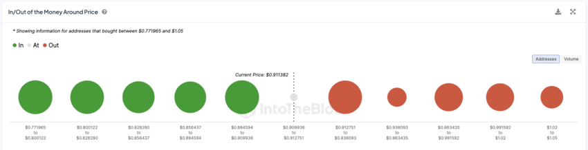 Der Global In/Out of the Money (GIOM)-Indikator zeigt, dass ungefähr 360 Millionen USD an OP, die sich zwischen 2,88 USD und 3,44 USD befinden, profitabel werden könnten, sobald der Preis steigt.