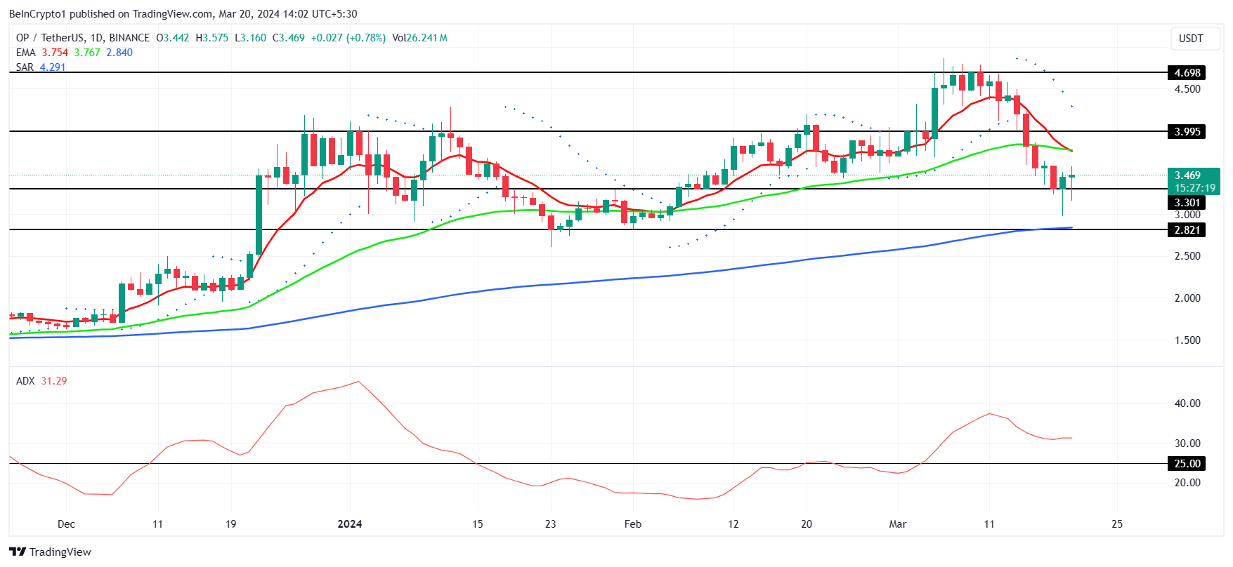 SponsoredDer Optimism Kurs steht zurzeit bei etwa 3,40 USD und befindet sich damit nur knapp unter der Obergrenze der eben genannten Investitionen. Daher werden betroffene Anleger:innen hier wohl kaum mit einem Minus verkaufen. Dies wiederum würde die Aufwärtsdynamik aufrechterhalten.