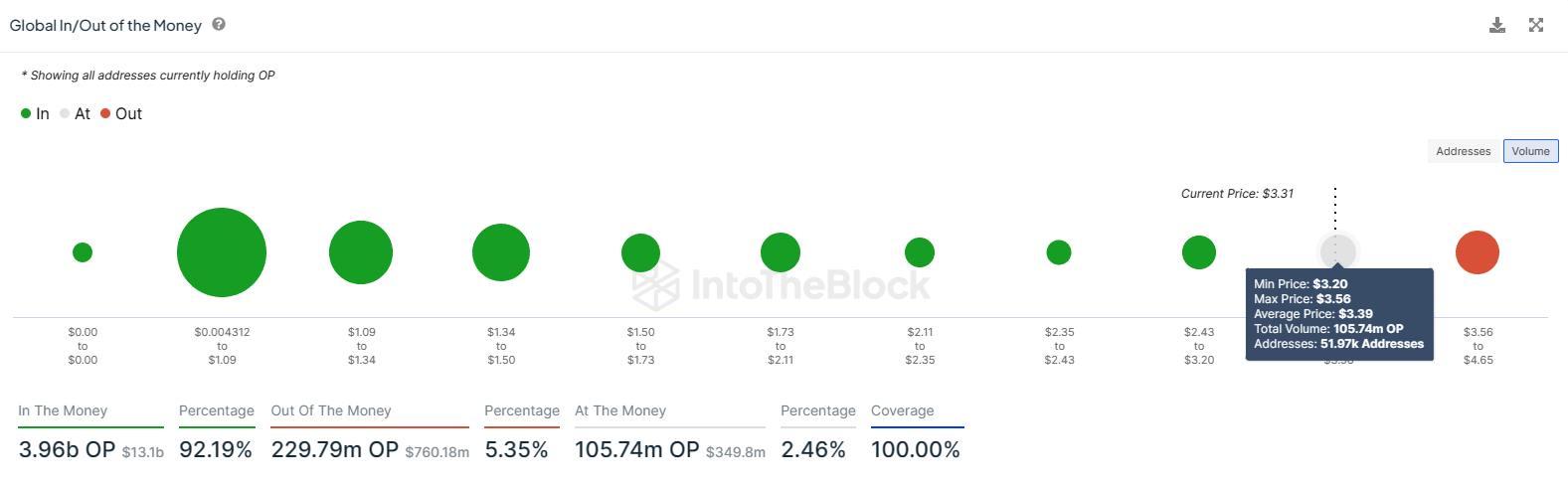 Sollte sich diese positive Tendenz fortsetzen, würde dies den Kurs weiter nach oben treiben. Vielen Anleger:innen scheint dies nur in die Karten zu spielen, denn 105 Millionen OP im Wert von über 364 Millionen USD stehen kurz davor, rentabel zu werden. Diese Anleger:innen kauften zwischen 3,20 USD bzw. 3,56 USD, befinden sich nach der 30-prozentigen allerdings im Minus.