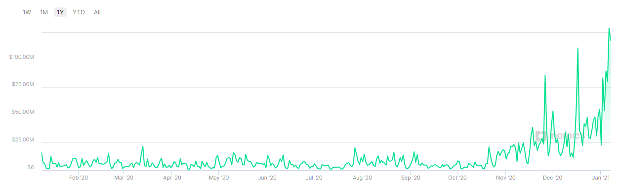 Das tägliche Handelsvolumen der Exchange hat heute ein neues Allzeithoch erreicht. Die meisten Transaktionen wurden mit Bitcoin und Ethereum abgewickelt. Der Tagesumsatz der Exchange hat sich also seit der Krypto-Integration im Oktober 2020 beinahe verfünffacht.