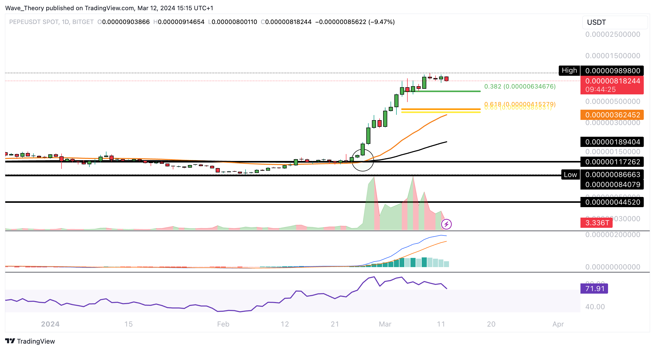 Korrigiert der PEPE Kurs jetzt zu den nächsten Fibonacci Niveaus?