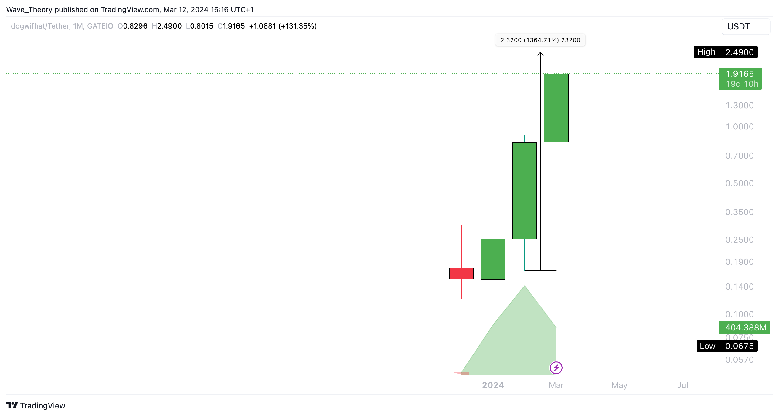 Der Memecoin WIF konnte knapp 300 % mehr als PEPE steigen