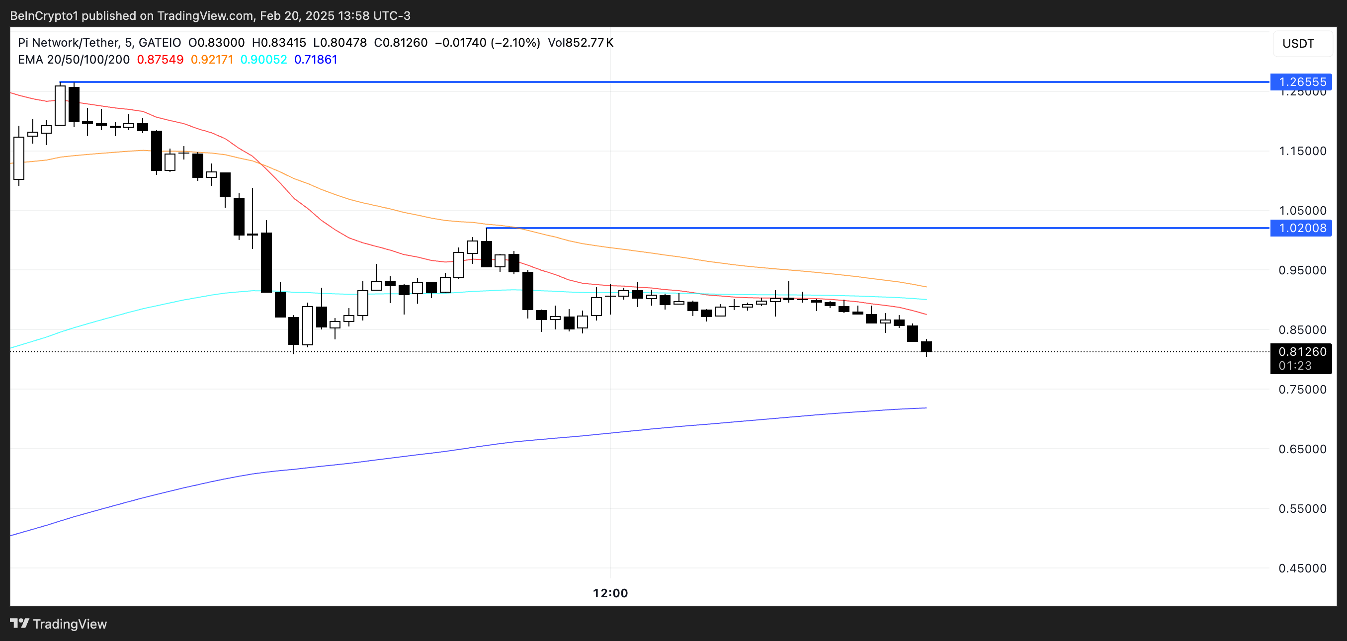 Sollte der Verkaufsdruck anhalten, könnte Pi Coin die Unterstützung bei etwa 0,71 USD testen, wo die längste EMA-Linie verläuft. Dies ist ein kritischer Bereich für die Aufrechterhaltung der aktuellen Preisspanne.