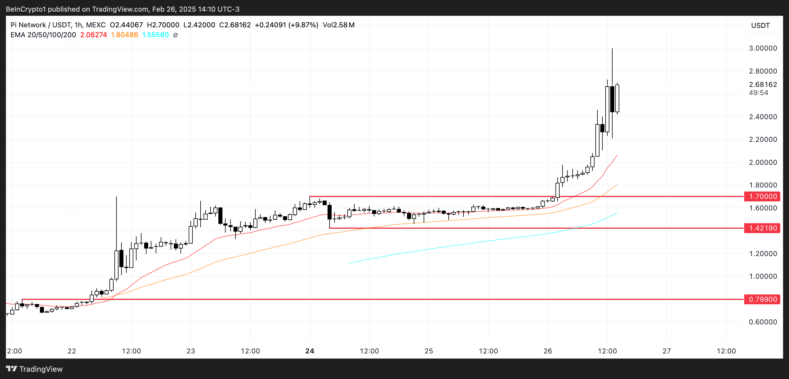Sponsored SponsoredMit dieser starken Aufwärtsdynamik könnte Pi seinen Aufstieg fortsetzen, die psychologische Barriere von 3 USD durchbrechen und in naher Zukunft höhere Widerstandsniveaus bei 3,5 USD oder sogar 4 USD testen.