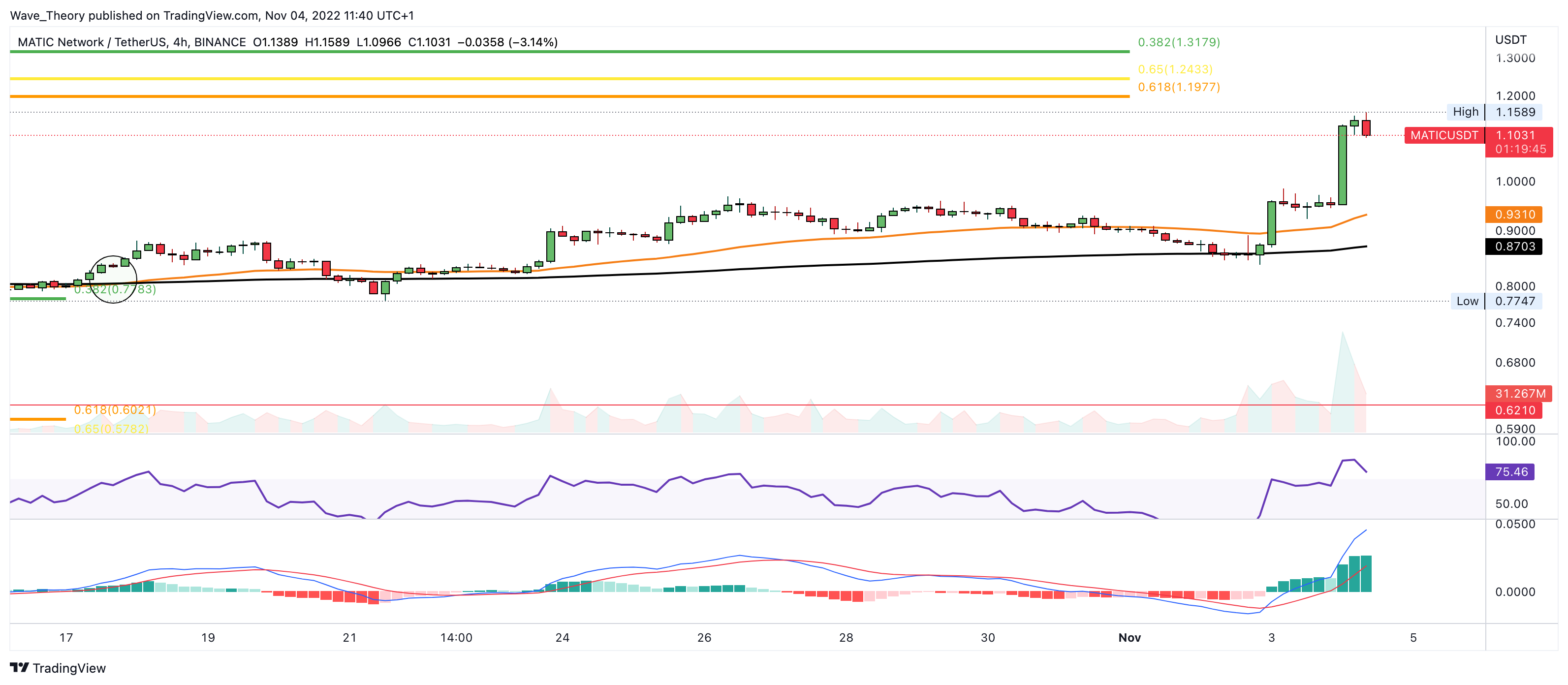 Sollte MATIC jetzt aber korrigieren, findet MATIC bei rund 1 USD und 0,86 USD die nächsten Signifikaten Fibonacci Unterstützungen.