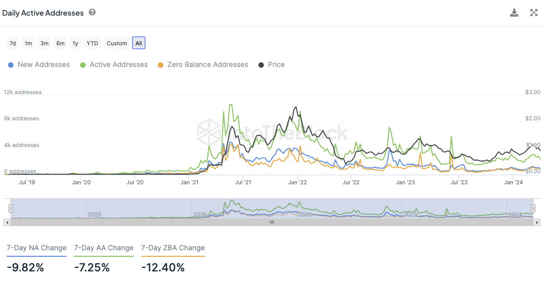 Die Netzwerkaktivität hat in den letzten sieben Tagen wieder abgenommen. So ist die Anzahl an aktiven Adressen um rund 7,25 % gefallen, wohingegen die Anzahl an Polygon Adressen ohne Guthaben um rund 12,4 % zurückgegangen ist.
