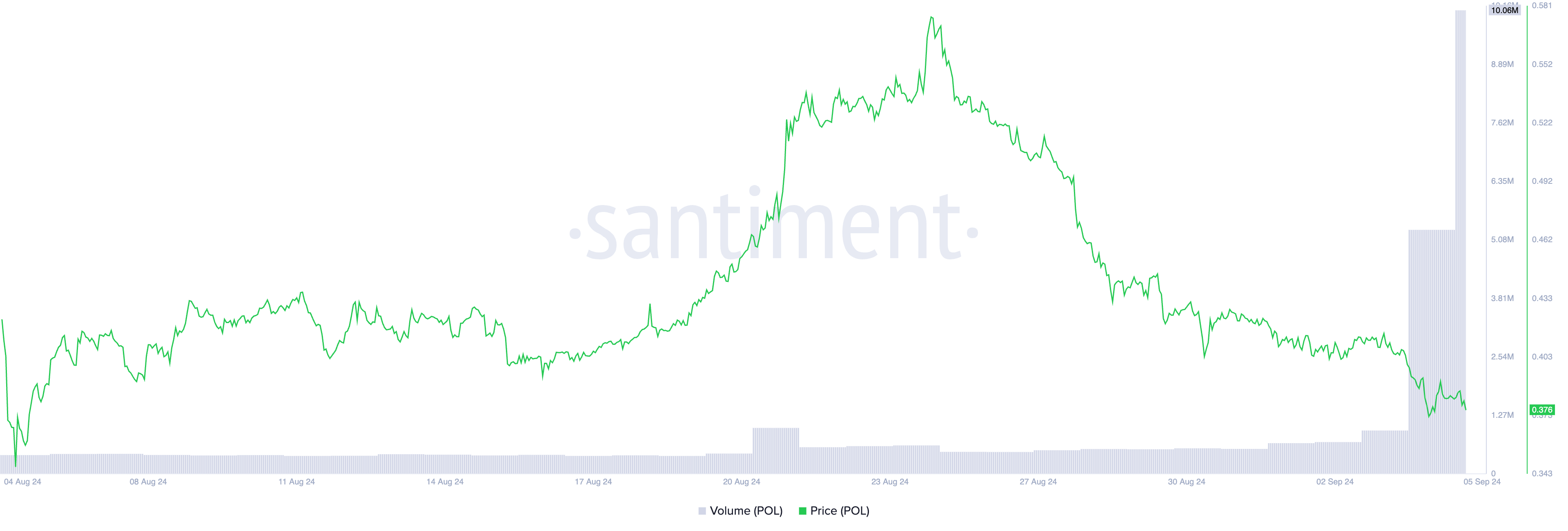 POL wird derzeit zu 0,37 USD gehandelt und zeigt eine verhaltene Reaktion auf das Token-Upgrade. In den letzten 24 Stunden ist der Kurs um drei Prozent gefallen, jedoch ist das Handelsvolumen um 925 Prozent gestiegen.