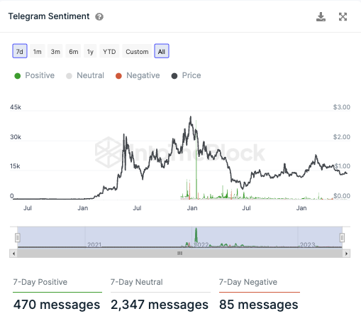 Von den geschriebenen Nachrichten in Telegram, die über Polygon handeln, sind trotzdem die meisten positiv. Denn 85 negativen Nachrichten stehen 470 positive Nachrichten gegenüber, womit die Stimmung auf Telegram größtenteils positiv bleibt.