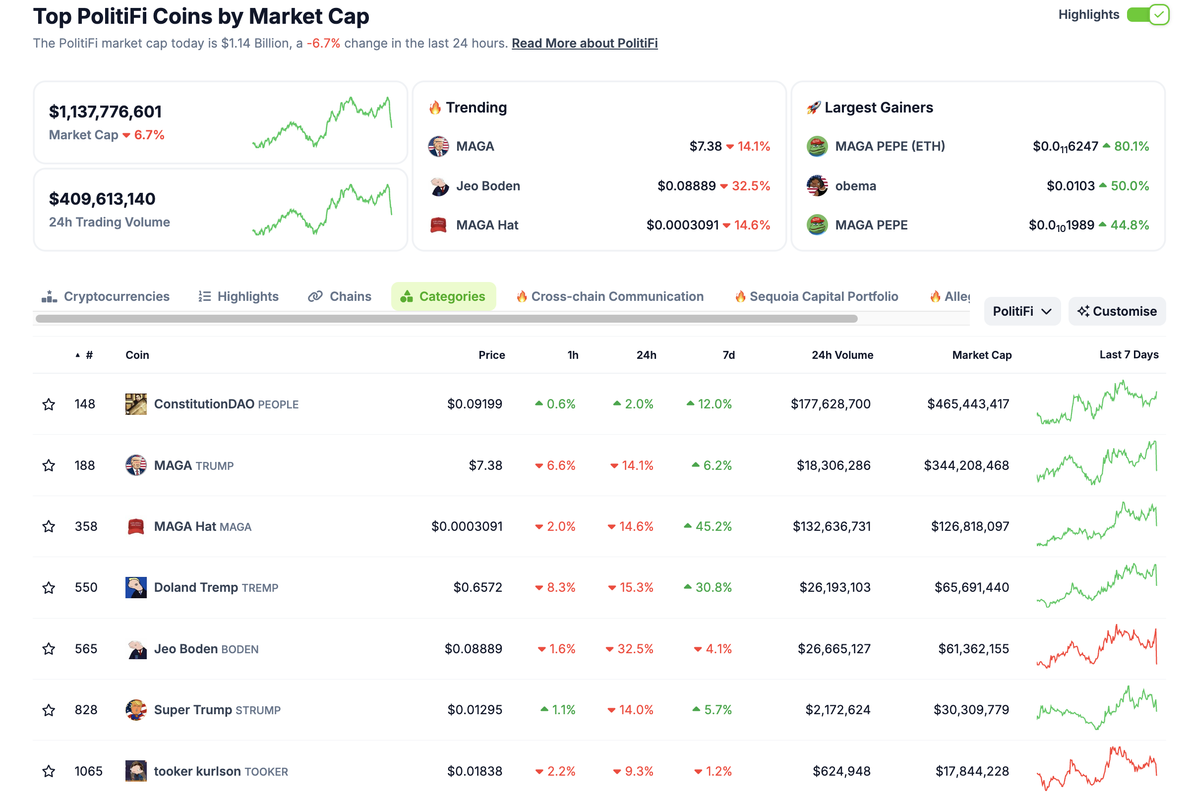 Der Markt reagierte, indem er politisch thematisierte (PolitiFi) Memecoins drastisch abverkaufte.