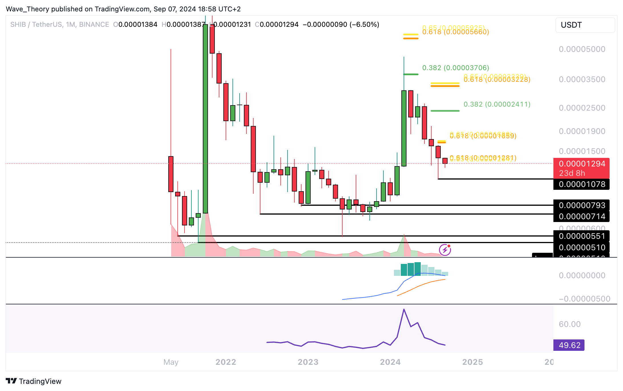 Insgesamt befindet sich Shiba Inu seit einem halben Jahr in einem starken Abwärtstrend. Fällt Shiba Inu sogar unter den letzten Tiefpunkt von 0,00001078 USD, wartet erst wieder zwischen rund 0,00000714 USD und 0,00000793 USD signifikante Unterstützung auf den SHIB Kurs.