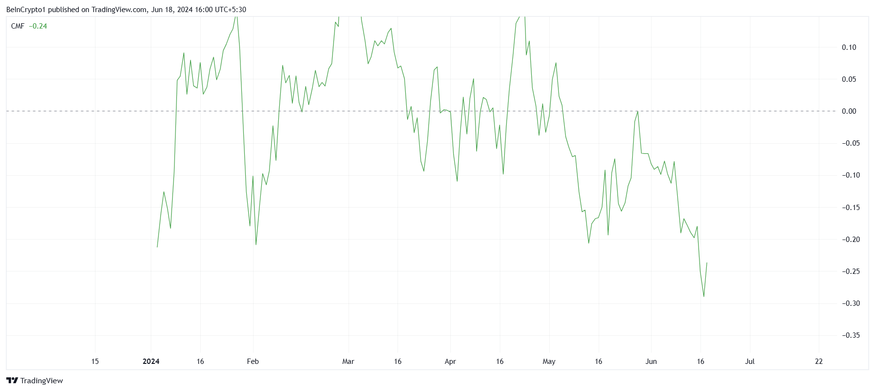 Dieser Trend hat seinen bisher höchsten Punkt erreicht, was auf eine starke Bärenstimmung unter den Investoren hinweist. Der erhöhte Verkaufsdruck, der im CMF sichtbar wird, zeigt einen erheblichen Kapitalabfluss. Dies signalisiert ein fehlendes Vertrauen, welches weitere Verkäufe nach sich ziehen könnte.