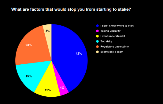Und dennoch mangelt es an Wissen, denn ein Großteil der Interessierten findet den Einstieg in den Staking-Bereich nicht, wie diese Grafik zeigt: