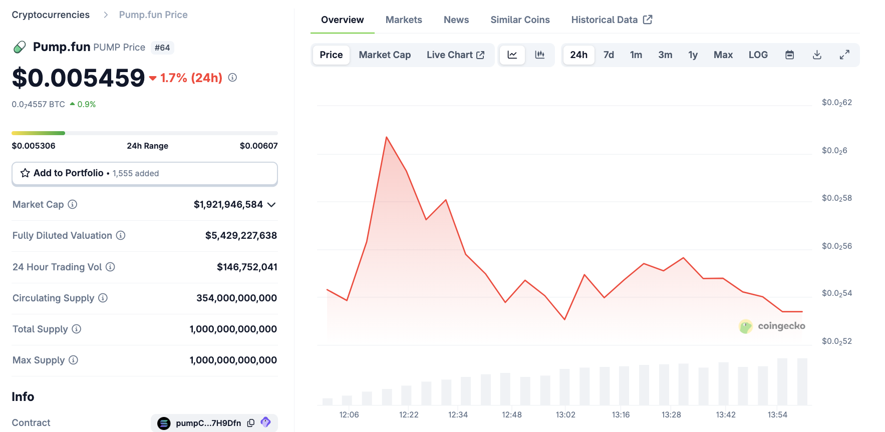 Natürlich schwankte der Kurs des Krypto-Token im Laufe des Tages, da Kleinanleger Gewinne erzielen wollten. Nachdem Pump.fun den öffentlichen Handel ankündigte, stieg PUMP dramatisch an, fiel aber schnell wieder zurück.