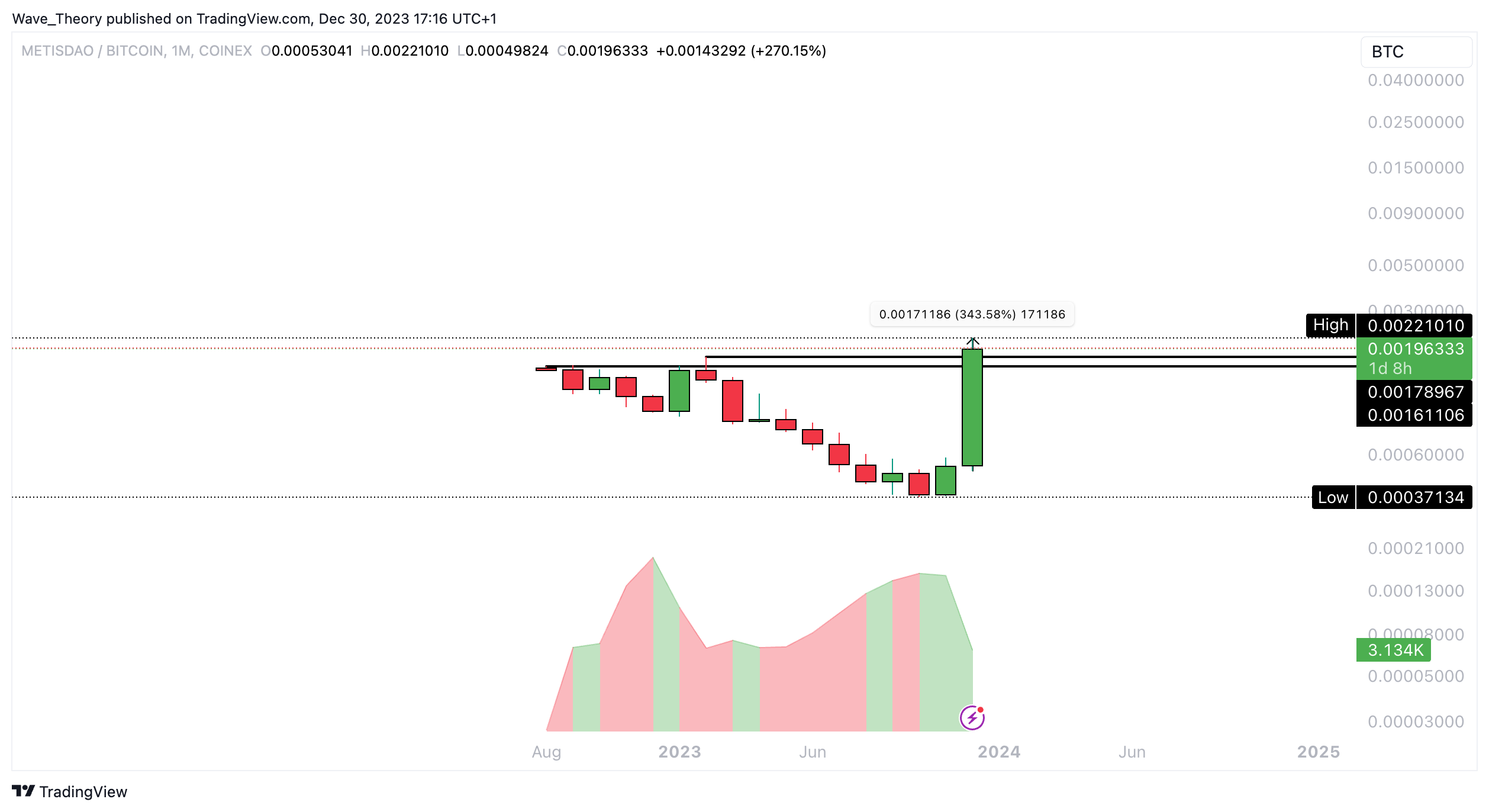 Gegen Bitcoin konnte der Metis Kurs in diesem Monat über 343 % steigen