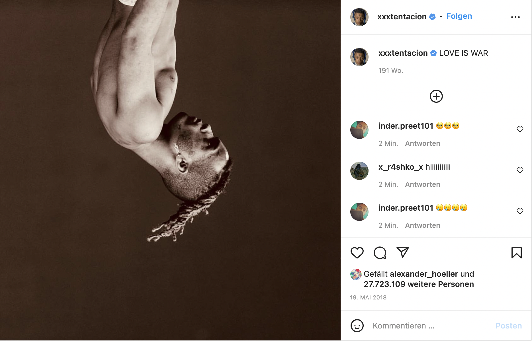 Der Fotograf Aimos Vasquez ist bekannt für das ikonische Schwarz-Weiß-Bild des Rappers XXXTentacion, “Love Is War”. Kürzlich hat der Fotograf dieses Foto als NFT in einer Sammlung auf dem BlockParty-Marktplatz veröffentlicht. Der Gesamtpreis der Sammlung ist nicht verkündet worden, aber das NFT von “Love Is War” verkaufte sich für 125.000 US-Dollar.