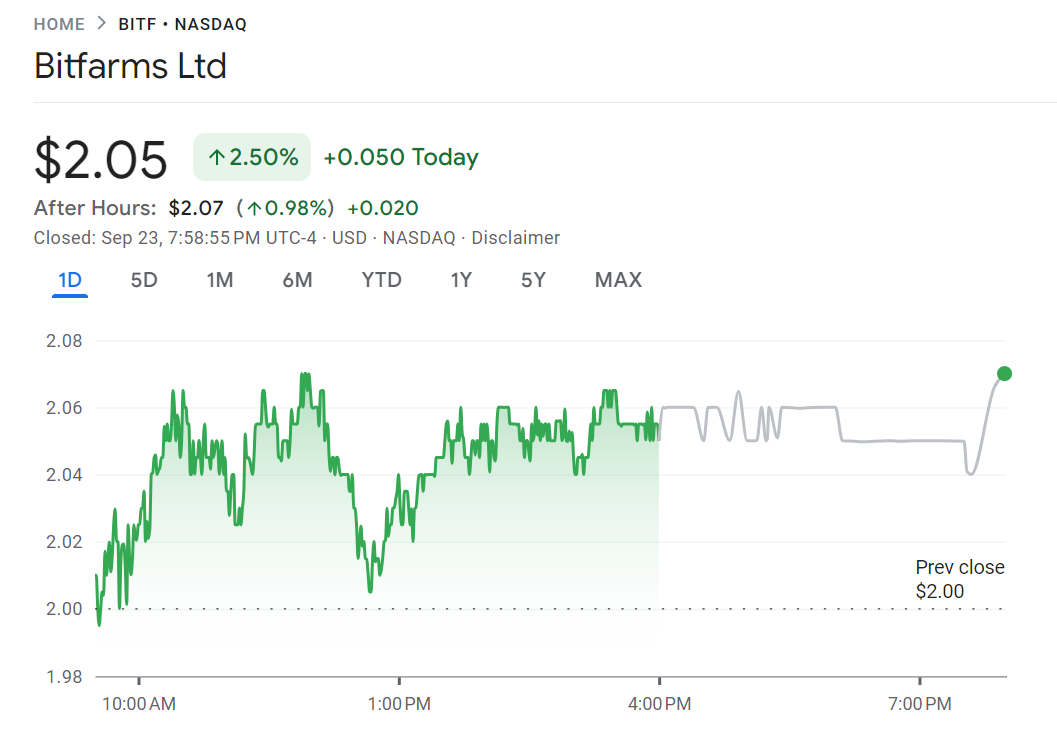 Am Tag der Einigung wurde die Aktie von Bitfarms (BITF) zu 2,05 USD gehandelt, was einem Anstieg von 2,05 Prozent entspricht. Jedoch hat die Aktie im Jahresverlauf einen Rückgang von 27,82 Prozent verzeichnet.