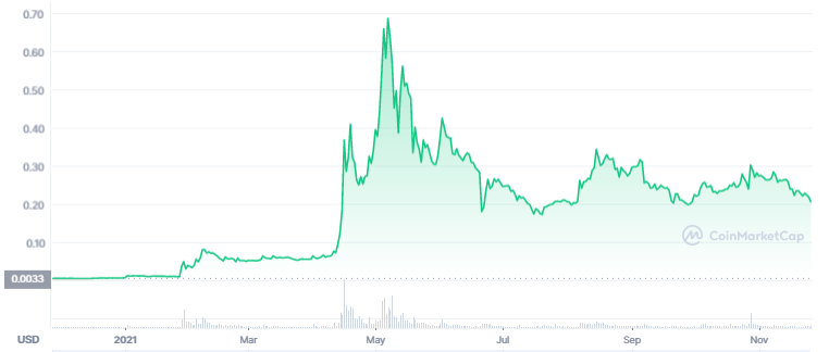 Das letzte Allzeithoch formte der DOGE Kurs am 8. Mai 2021 mit einem Hoch bei 0,731578 US-Dollar. Momentan rangiert der Dogecoin Kurs um die 0,2031 USD-Marke und ist somit weit vom letzten Allzeithoch entfernt.