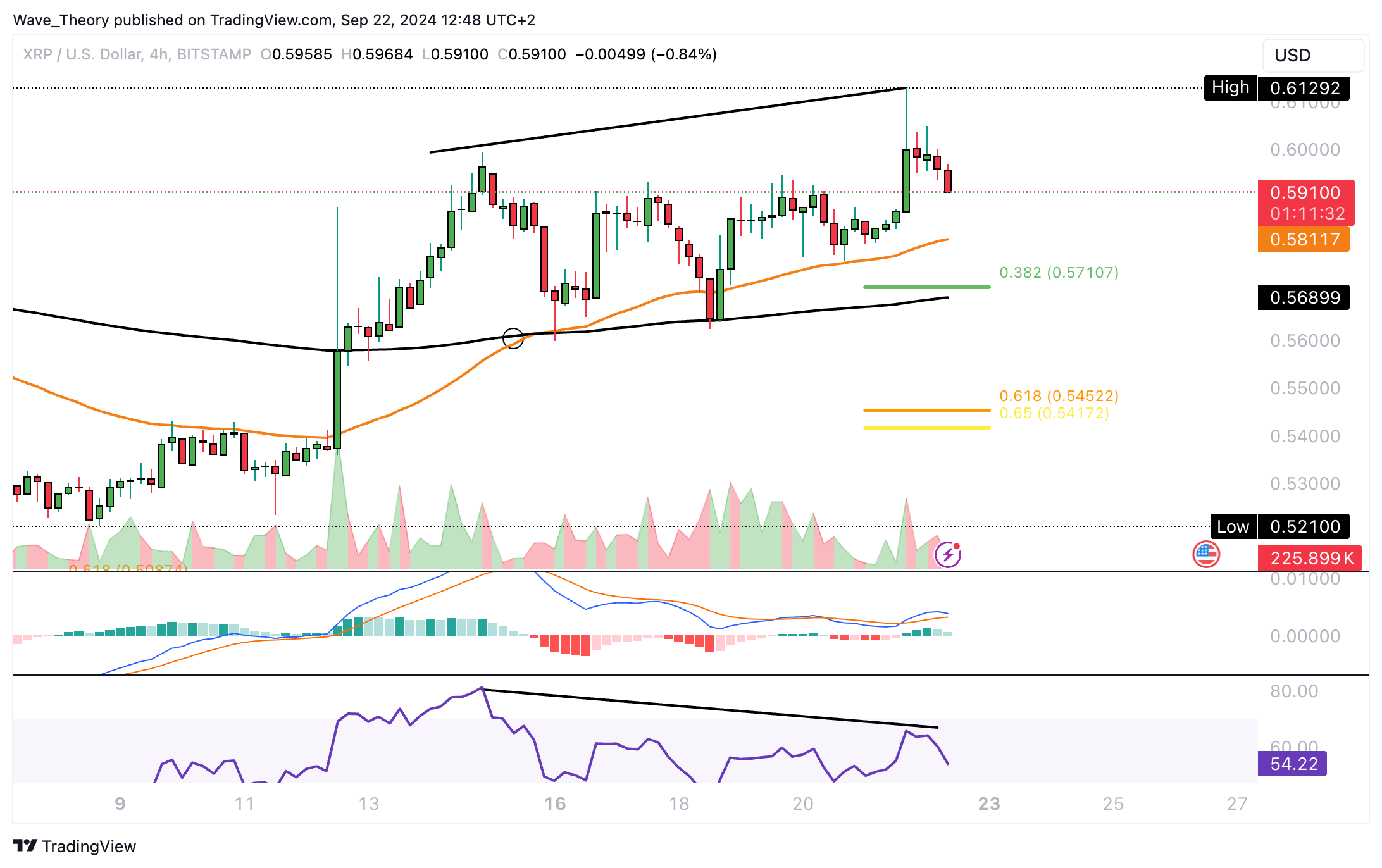 Auch im 4H-Chart formt der XRP Kurs eine bärische Divergenz