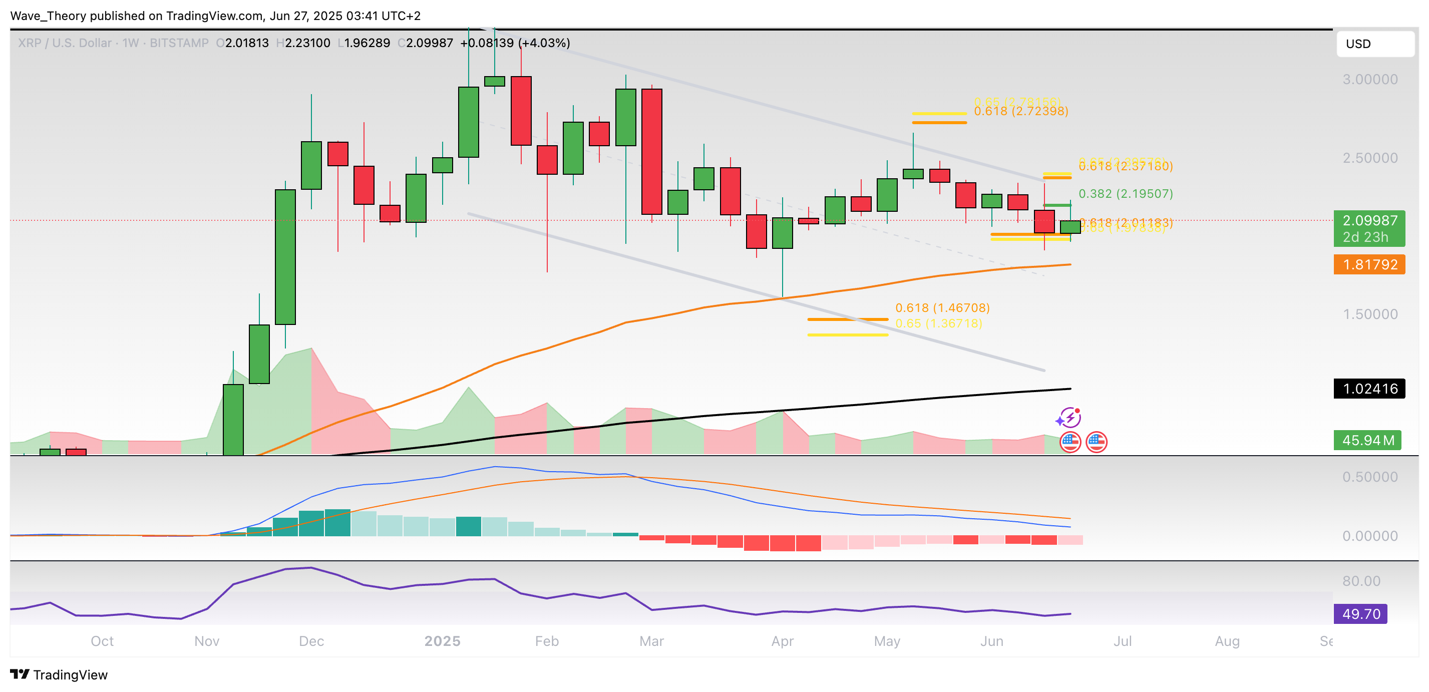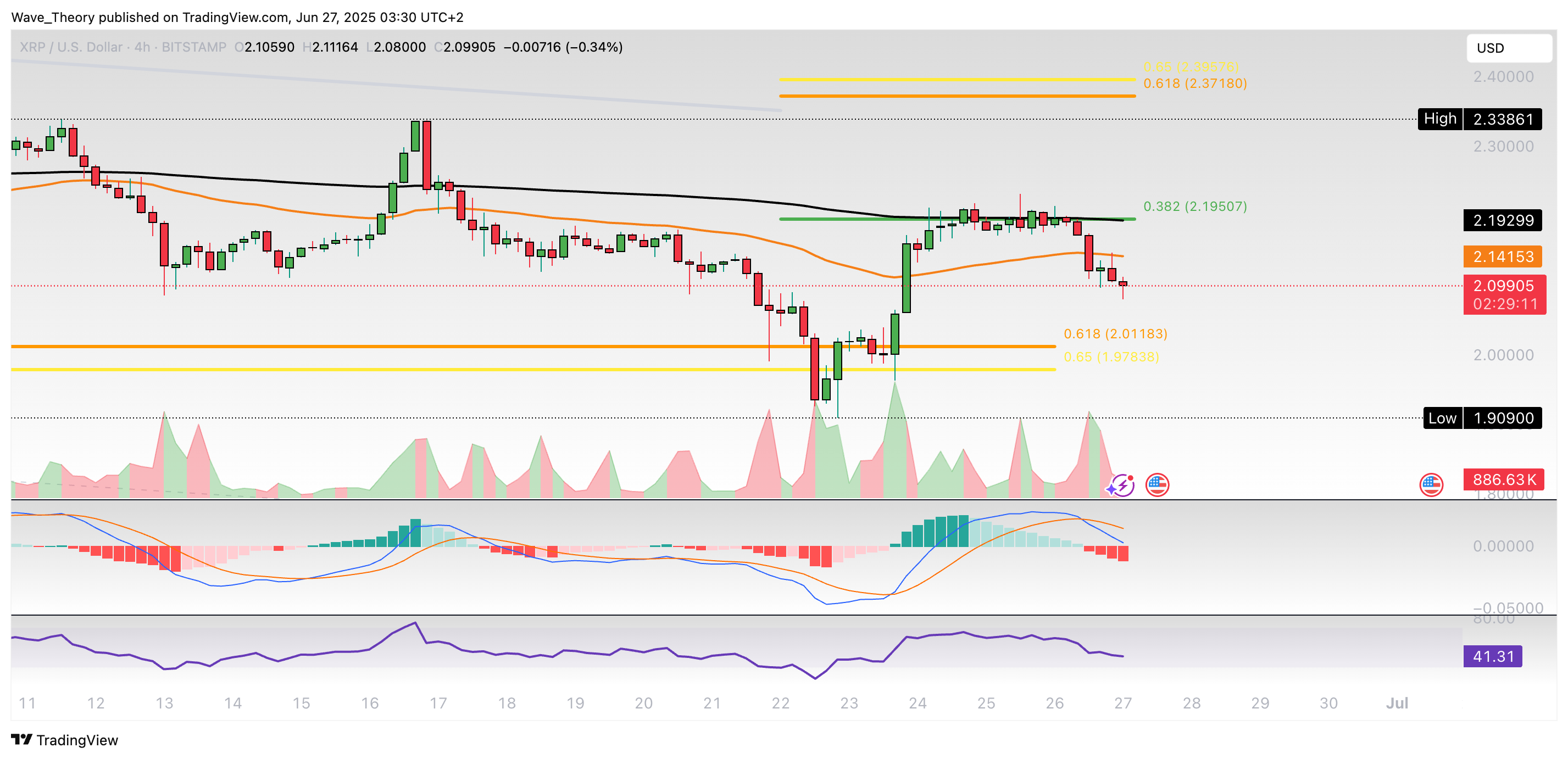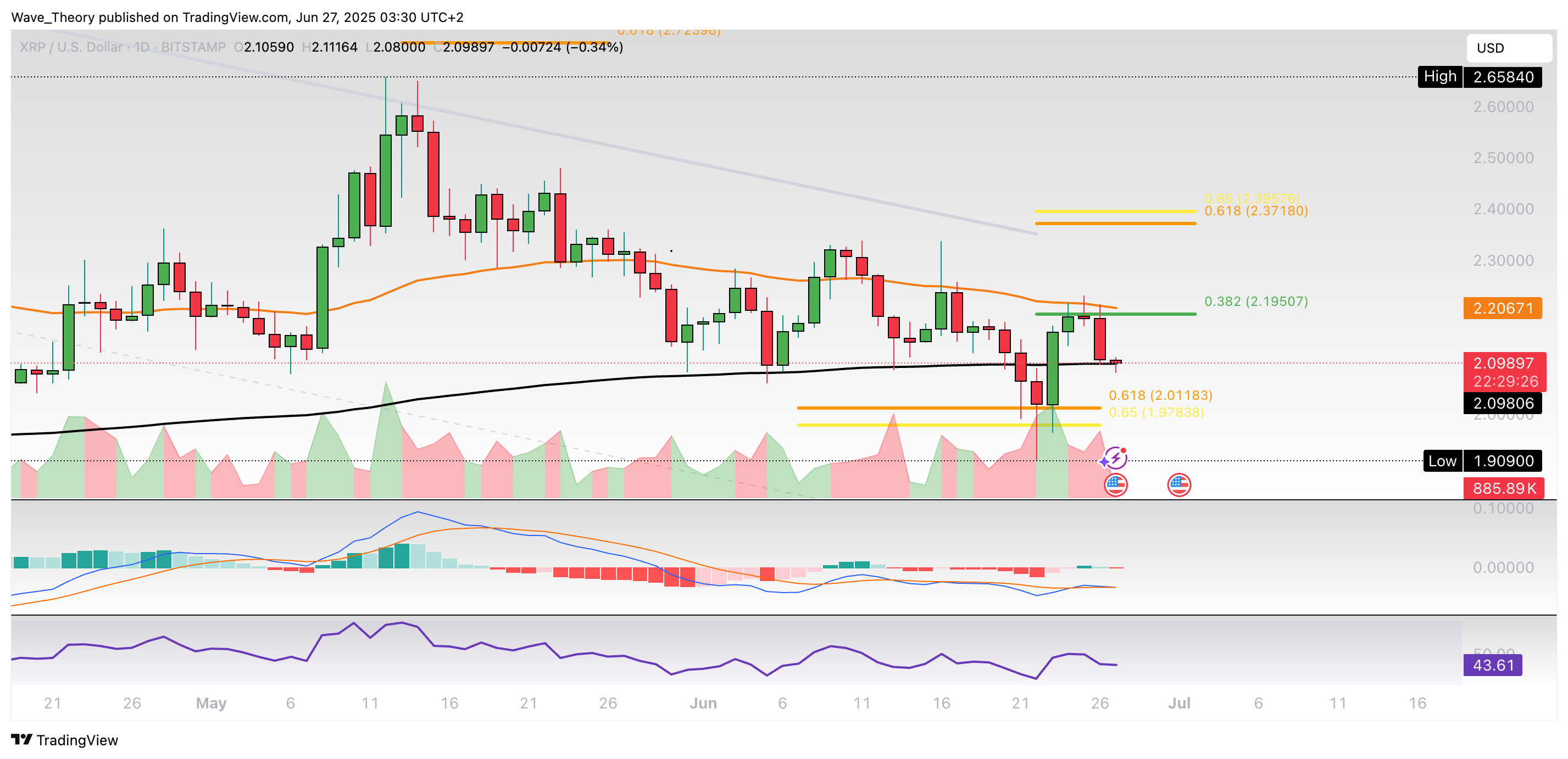 Ripple-Prognose für Freitag, 27. Juni 2025: Der XRP Kurs wurde am Fib Widerstand bärisch abgewiesen und könnte jetzt zur Unterstützung zurückkehren.