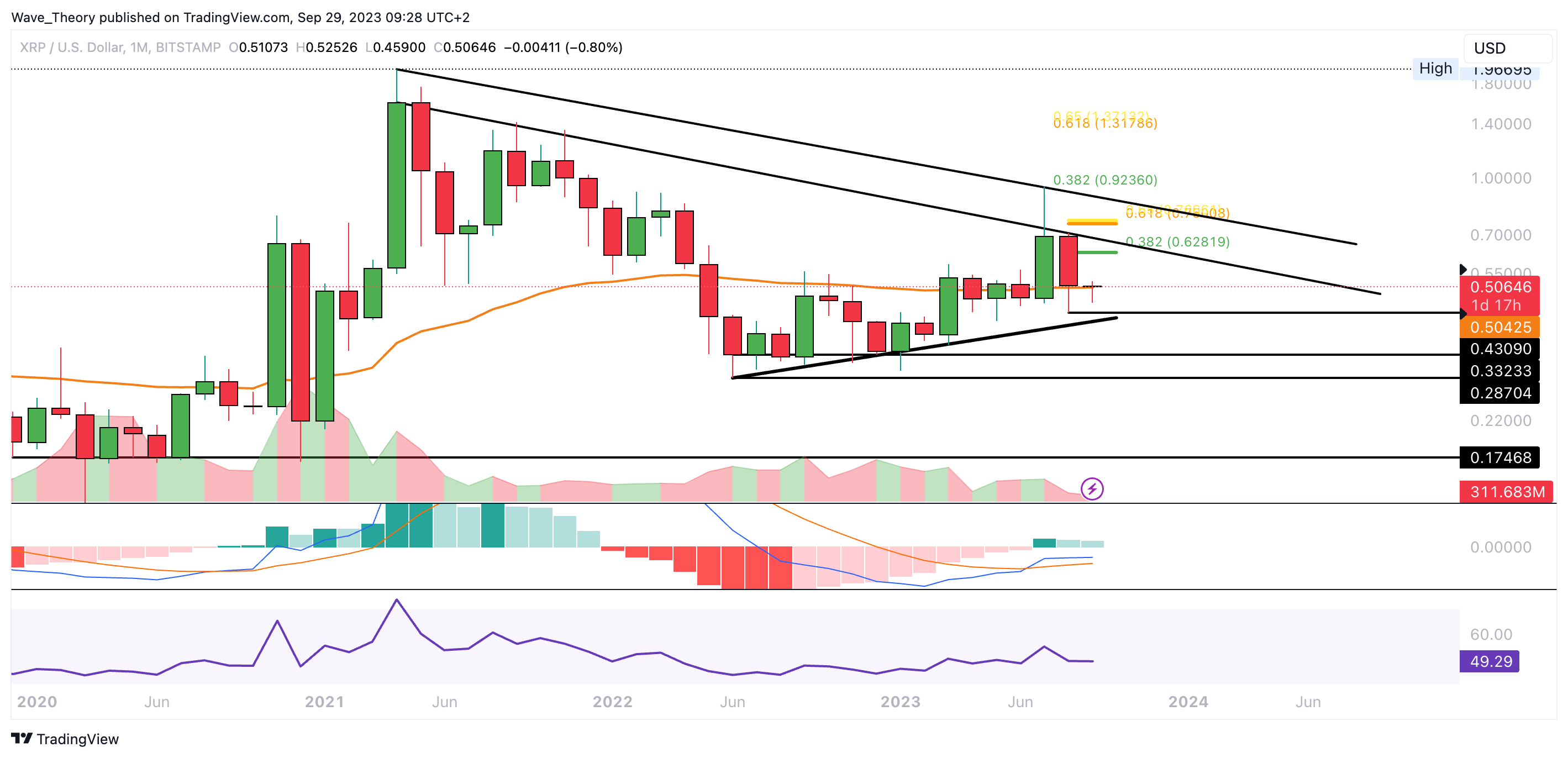 Der Ripple Kurs befindet sich immer noch an der 50-Monate-EMA Unterstützung bei rund 0,50425 USD, woran der Kurs in diesem Monat abzuprallen scheint. Denn bisher konnte sich Ripple tapfer darüber halten.
