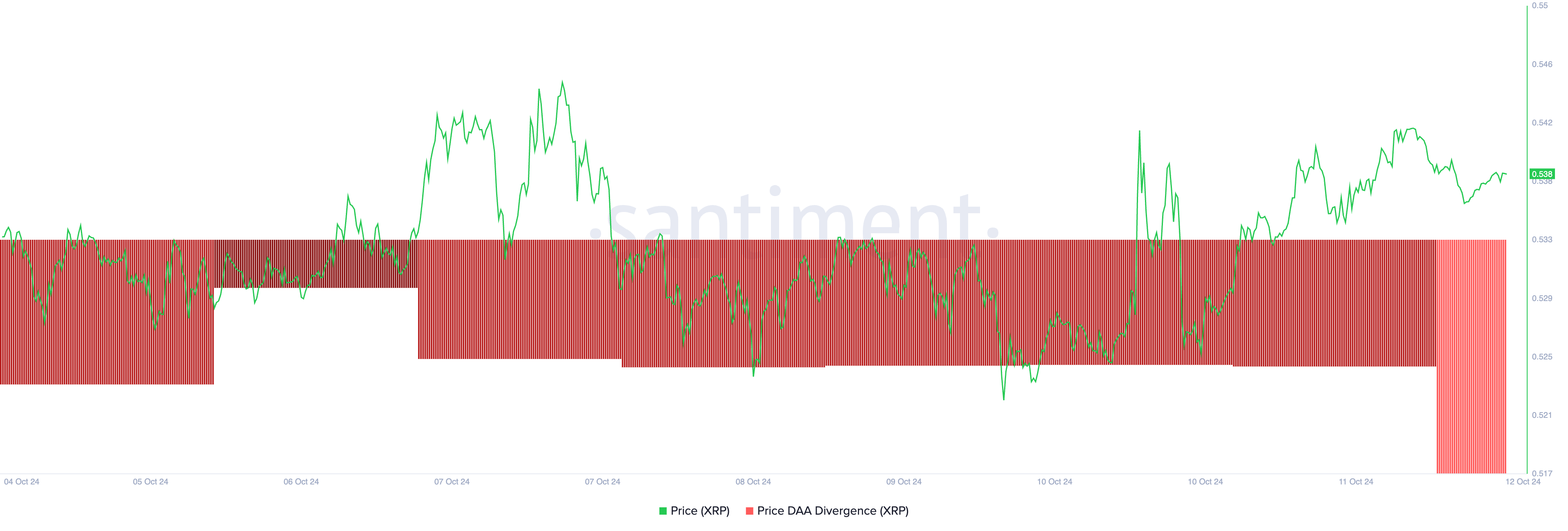 Die DAA-Divergenz misst die Kursbewegungen eines Vermögenswerts anhand der Veränderungen in der Anzahl seiner täglich aktiven Adressen. Ist sie negativ, wie im Fall von XRP, deutet dies auf einen Rückgang des Interesses oder des Vertrauens in den Vermögenswert hin.