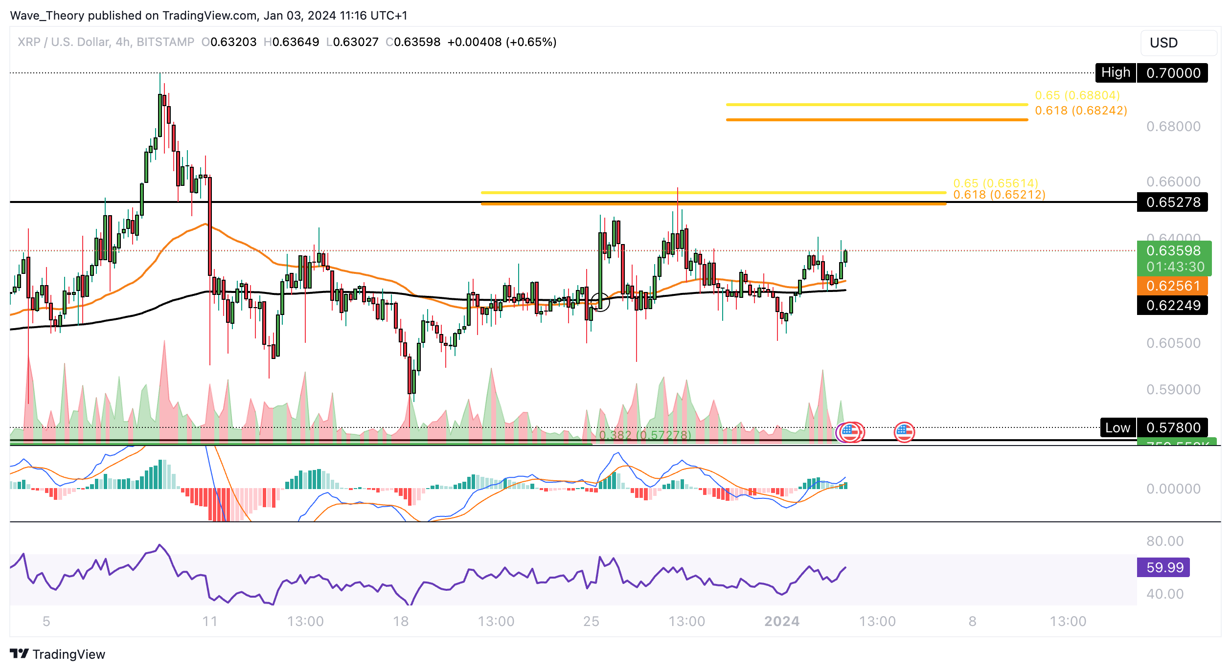 Wird der Ripple Kurs den Golden Ratio Widerstand bei rund 0,65 USD jetzt brechen?
