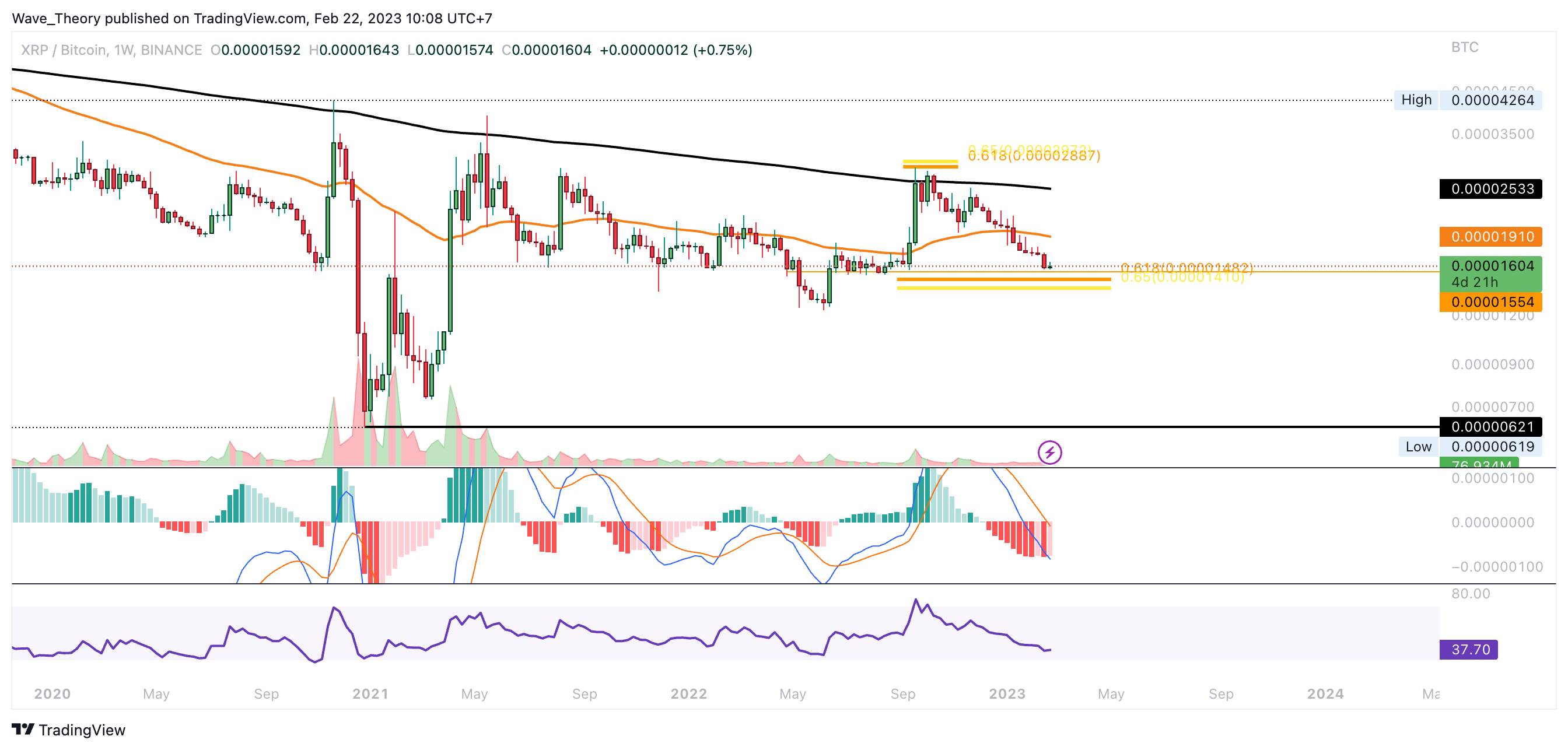 Gegen BTC könnte der XRP Kurs bald an signifikanter Golden Ratio Unterstützung abprallen
