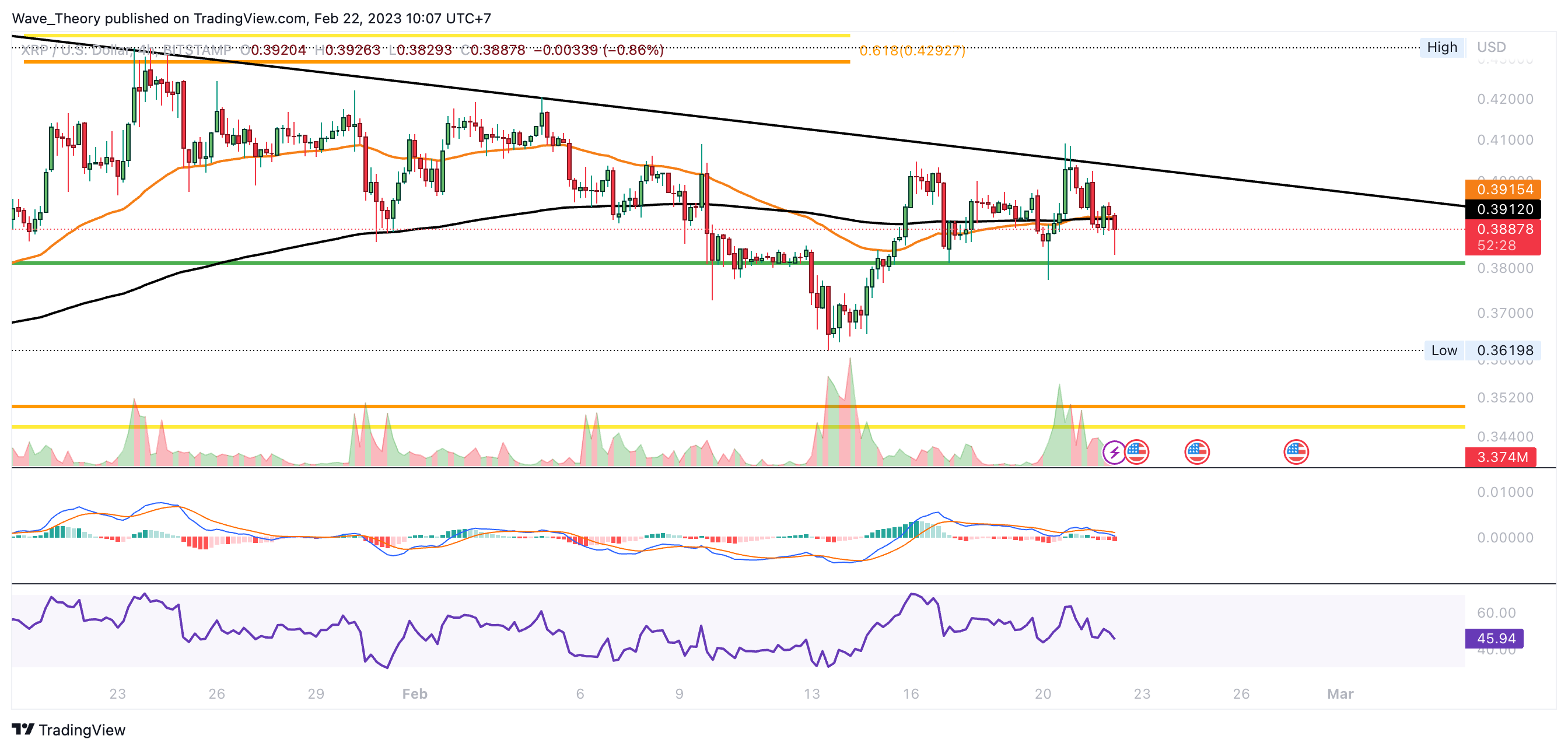 In der letzten XRP Kurs Prognose, welche mehr als zwei Wochen zurückliegt, schrieben wir: “Der XRP Kurs konnte den 200-Tage-EMA Widerstand bei rund 0,4178 USD nicht überwinden. Stattdessen stieß Ripple am Golden Ratio Niveau bei rund 0,43 USD auf bärische Ablehnung, womit sich XRP jetzt auf dem Weg zur nächsten Fib Unterstützung bei rund 0,38 USD befindet.