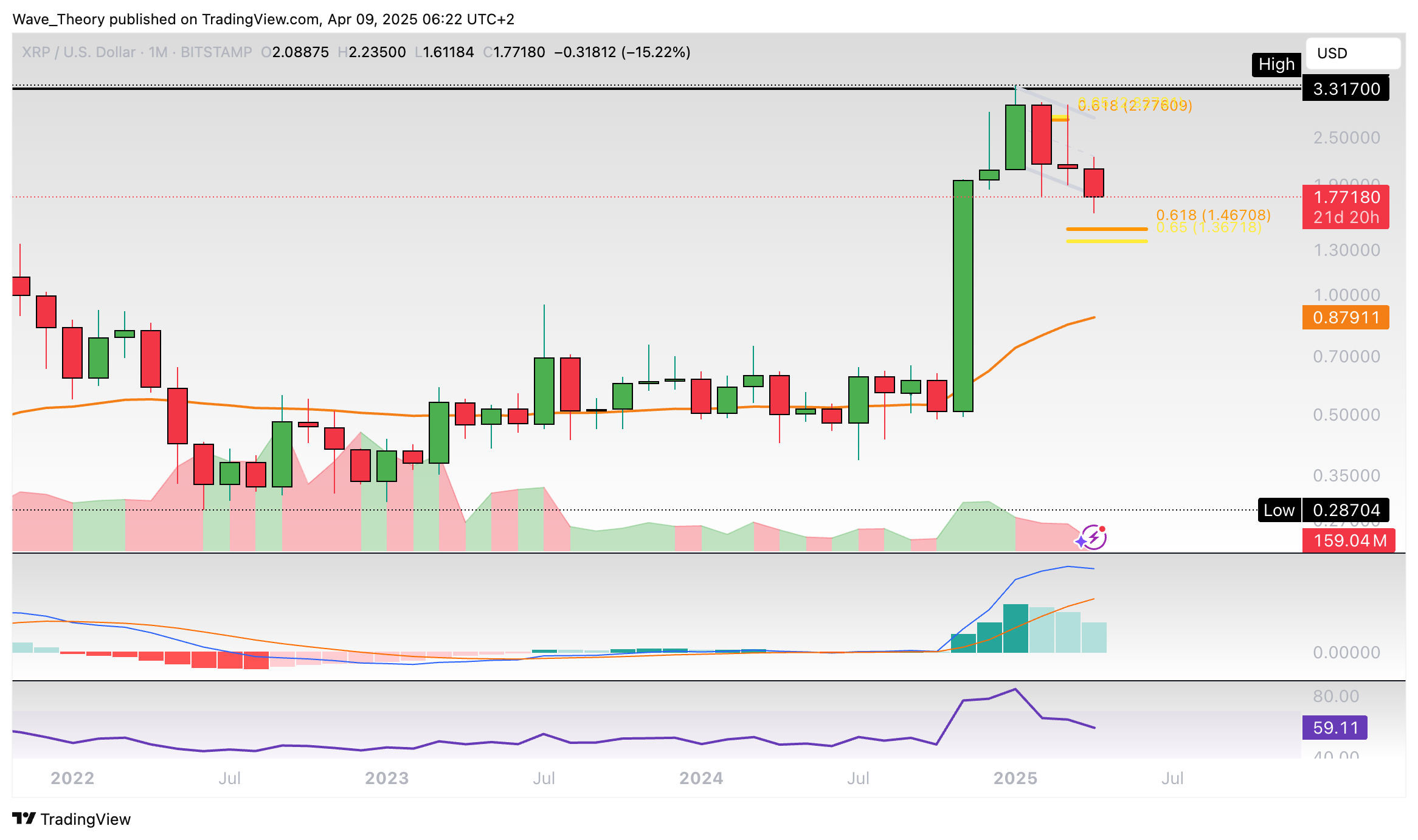 Andernfalls befindet sich Ripple zurück im Abwärtstrend. Dann könnte der XRP Kurs abstürzen – und womöglich zum 50-Monate-EMA bei rund 0,88 USD korrigieren.