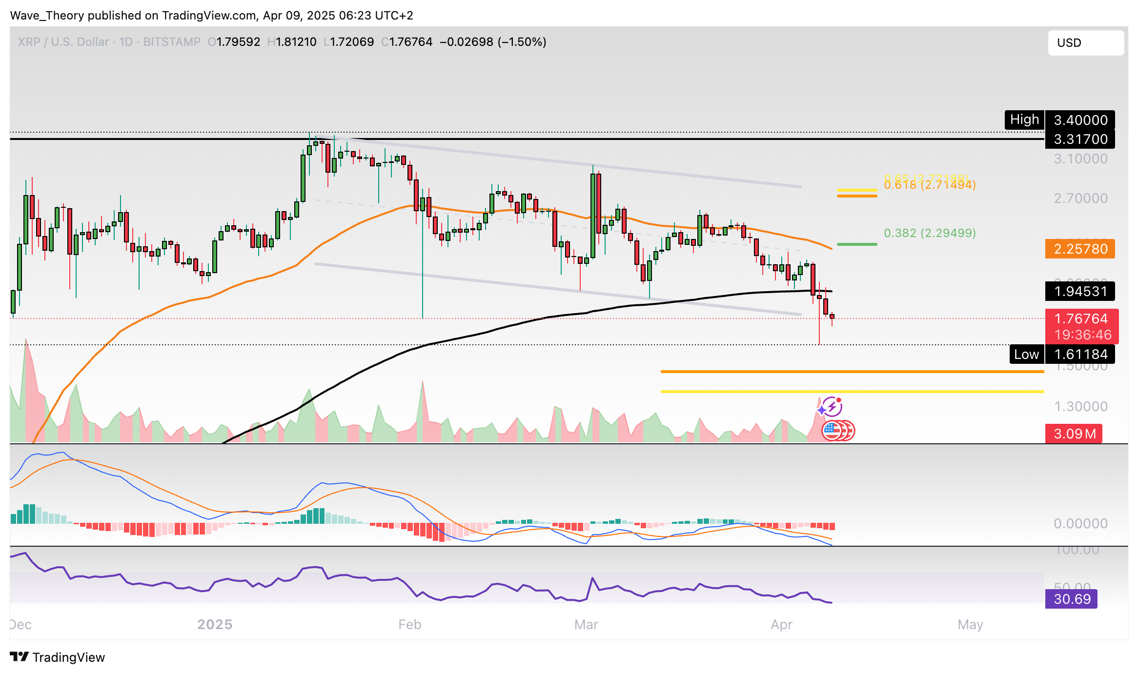 Ripple-Prognose für Mittwoch, 09. April 2025: Der XRP Kurs erreicht bald kritische Golden Ratio Unterstützung, woran der Kurs stark abprallen könnte.