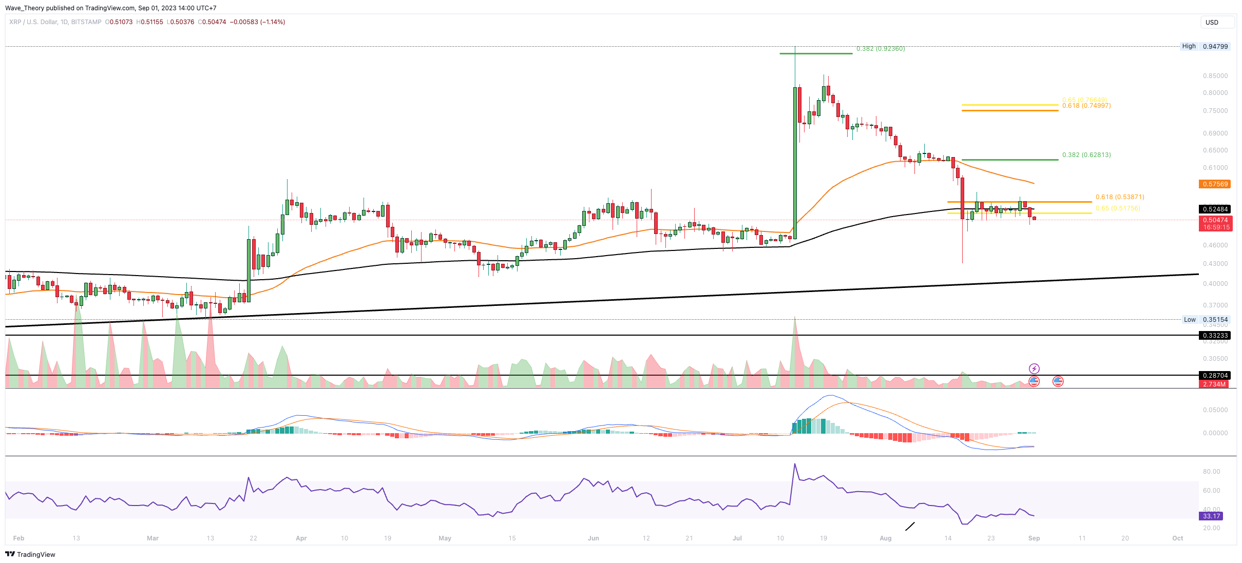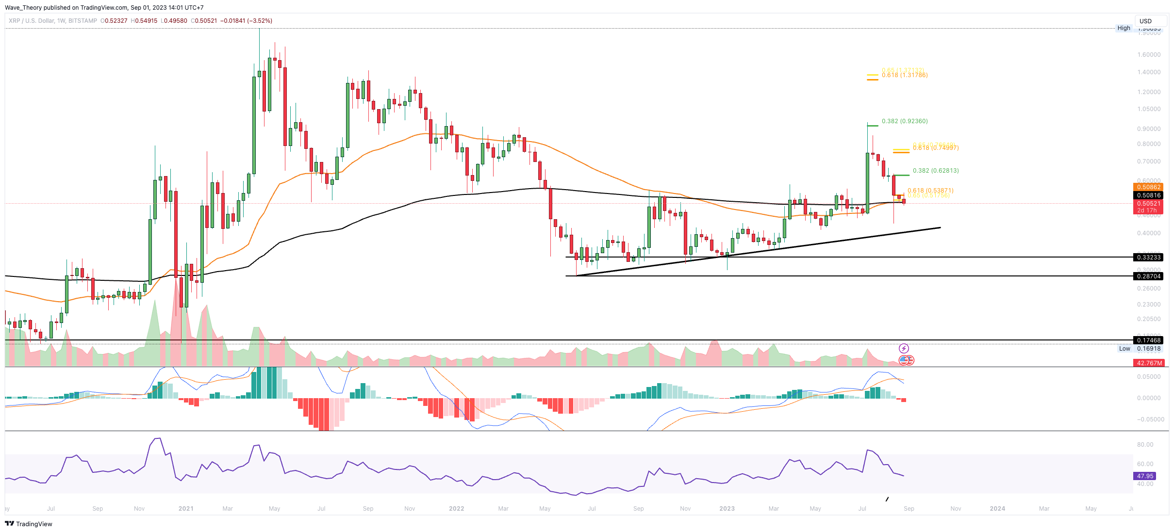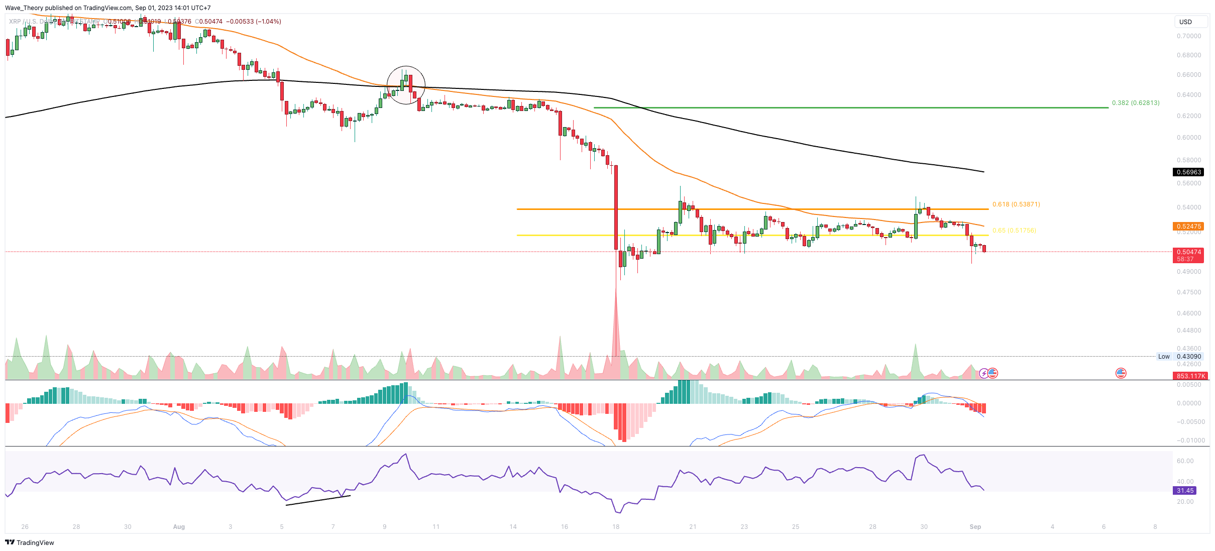 SponsoredDer XRP Kurs befindet sich noch an der Golden Ratio Unterstützung bei rund 0,52 USD