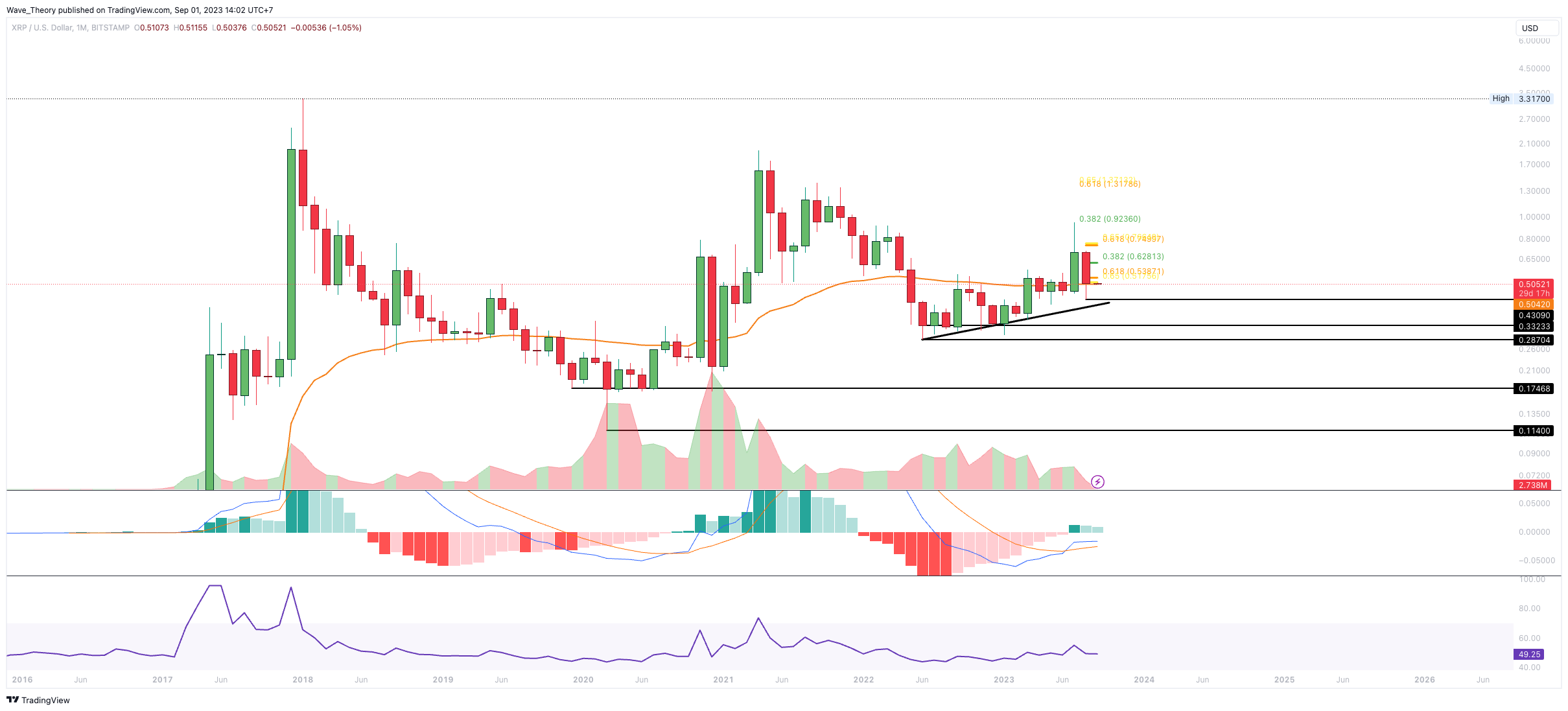 Der XRP Kurs befindet sich an der 50-Monate-EMA Unterstützung
