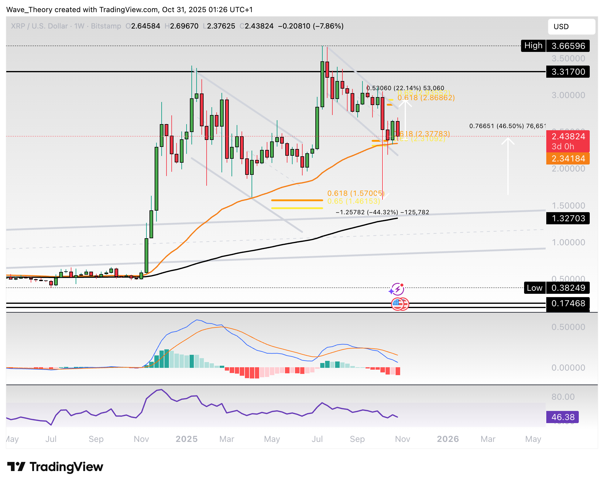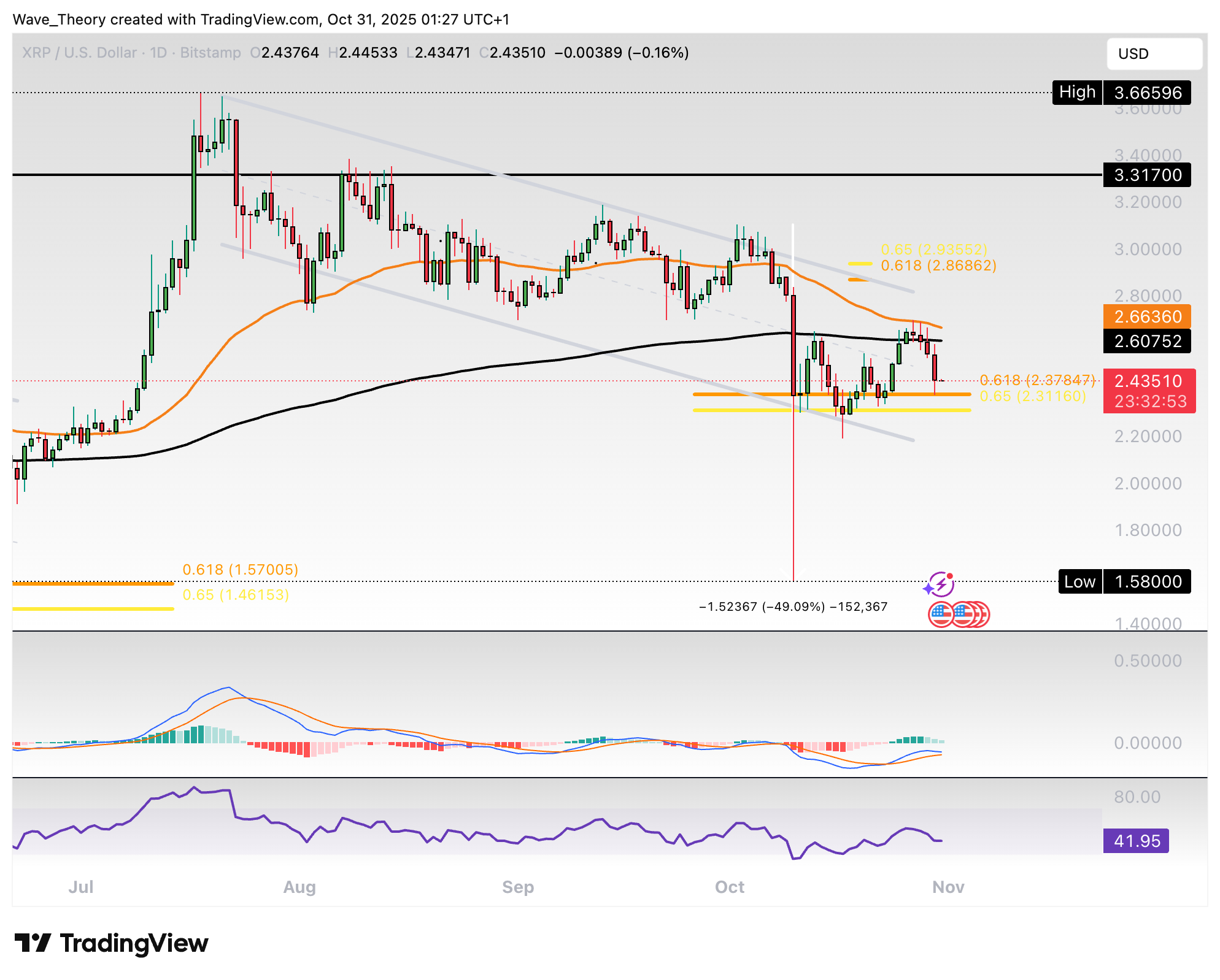 Ripple-Prognose für Freitag, 31. Oktober 2025: Der XRP Kurs hält sich an der Golden Ratio Unterstützung. Prallt der Kurs jetzt bullisch ab?
