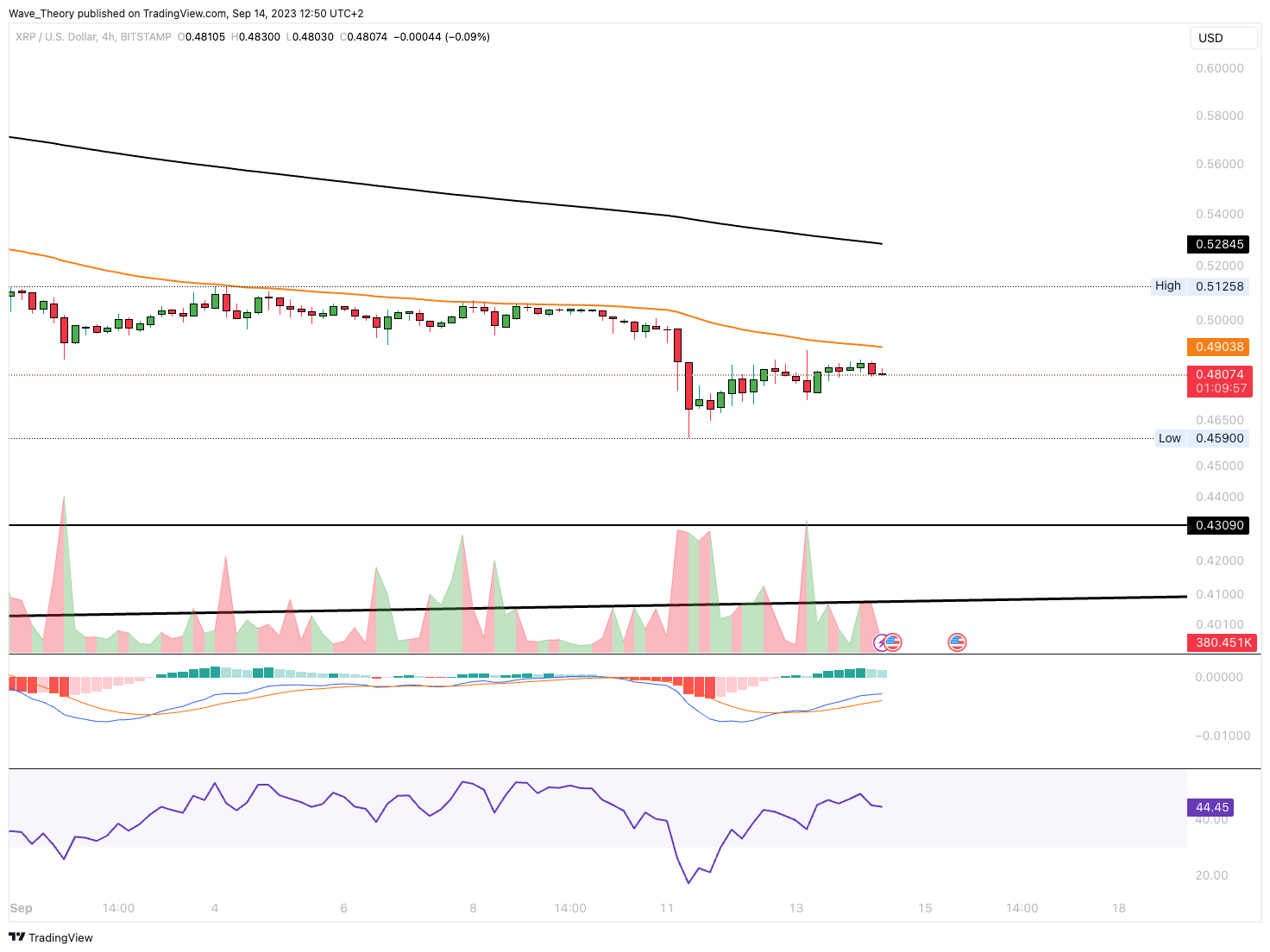 Zudem tickt das Histogramm des MACDs seit gestern bullisch höher, während der RSI an überverkauften Regionen grenzt. Nichtsdestoweniger könnte Ripple mittelfristig zum letzten Tiefpunkt bei rund 0,43 USD zurückkehren.