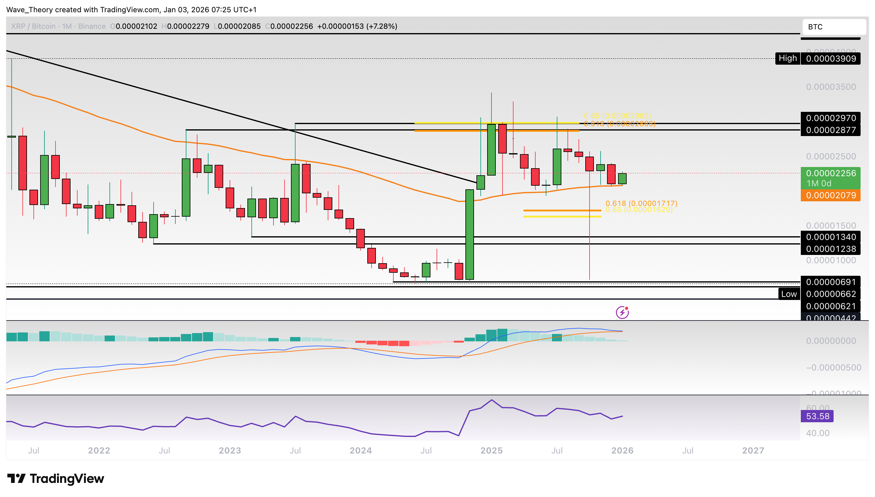 Gegen Bitcoin scheint der XRP Kurs jetzt am 50-Monate-EMA bullisch abzuprallen