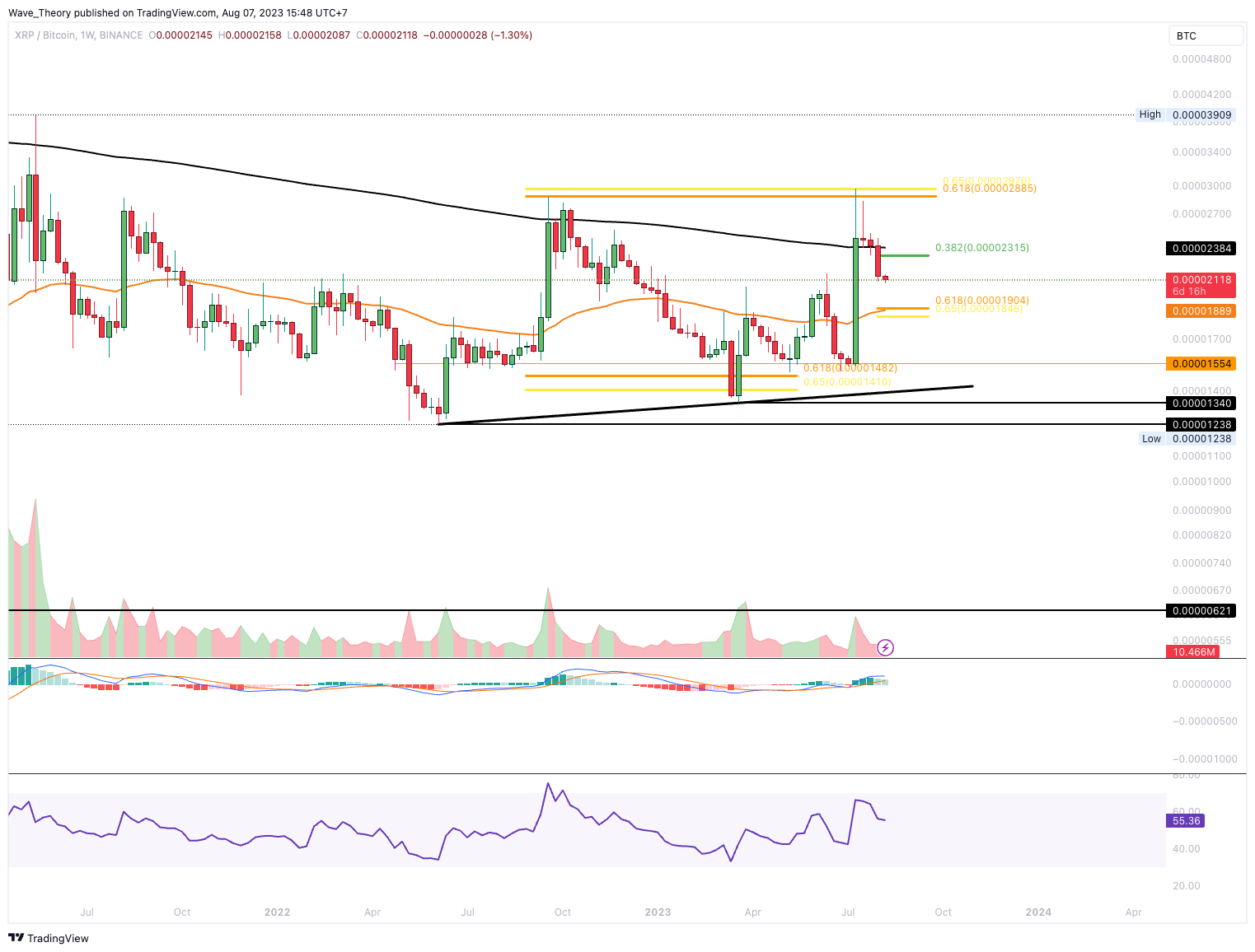 Auch gegen BTC könnte der XRP Kurs jetzt zur Golden Ratio Unterstützung zurückkehren