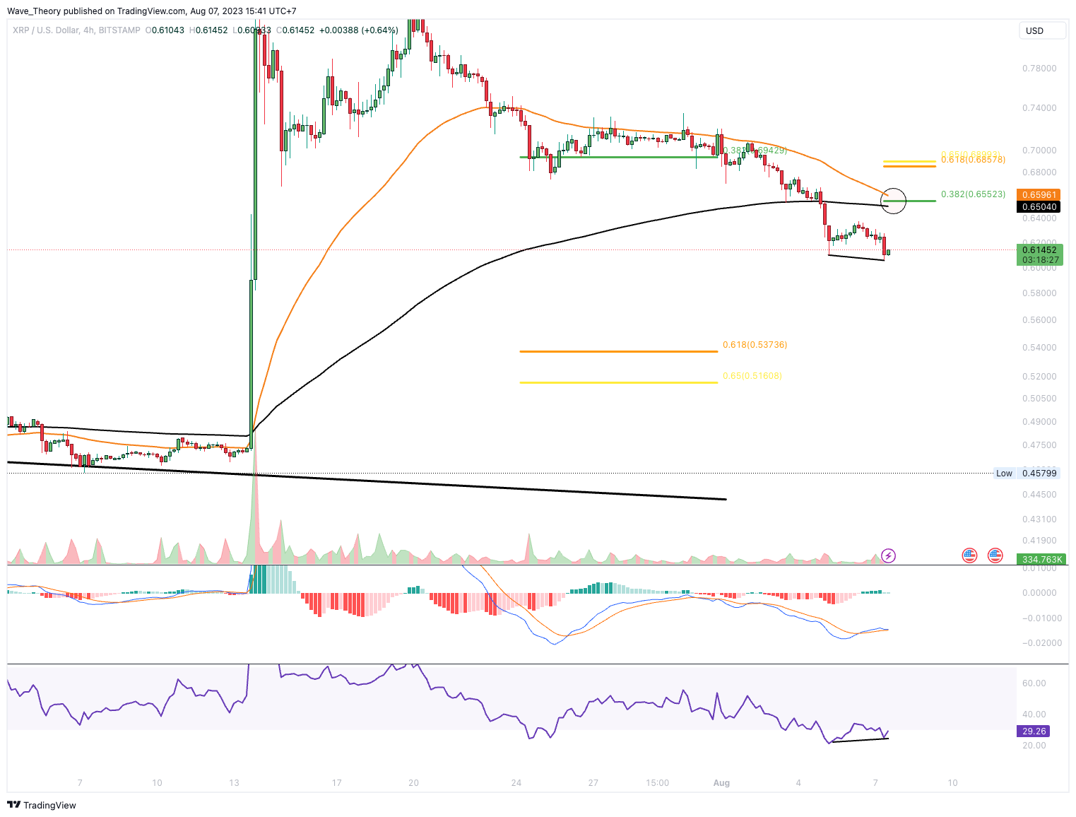 Der XRP Kurs hat die 0,382 Fib Unterstützung gebrochen und könnte damit eine Etage tiefer fallen. Wann ist die Abwärtsbewegung vorbei?