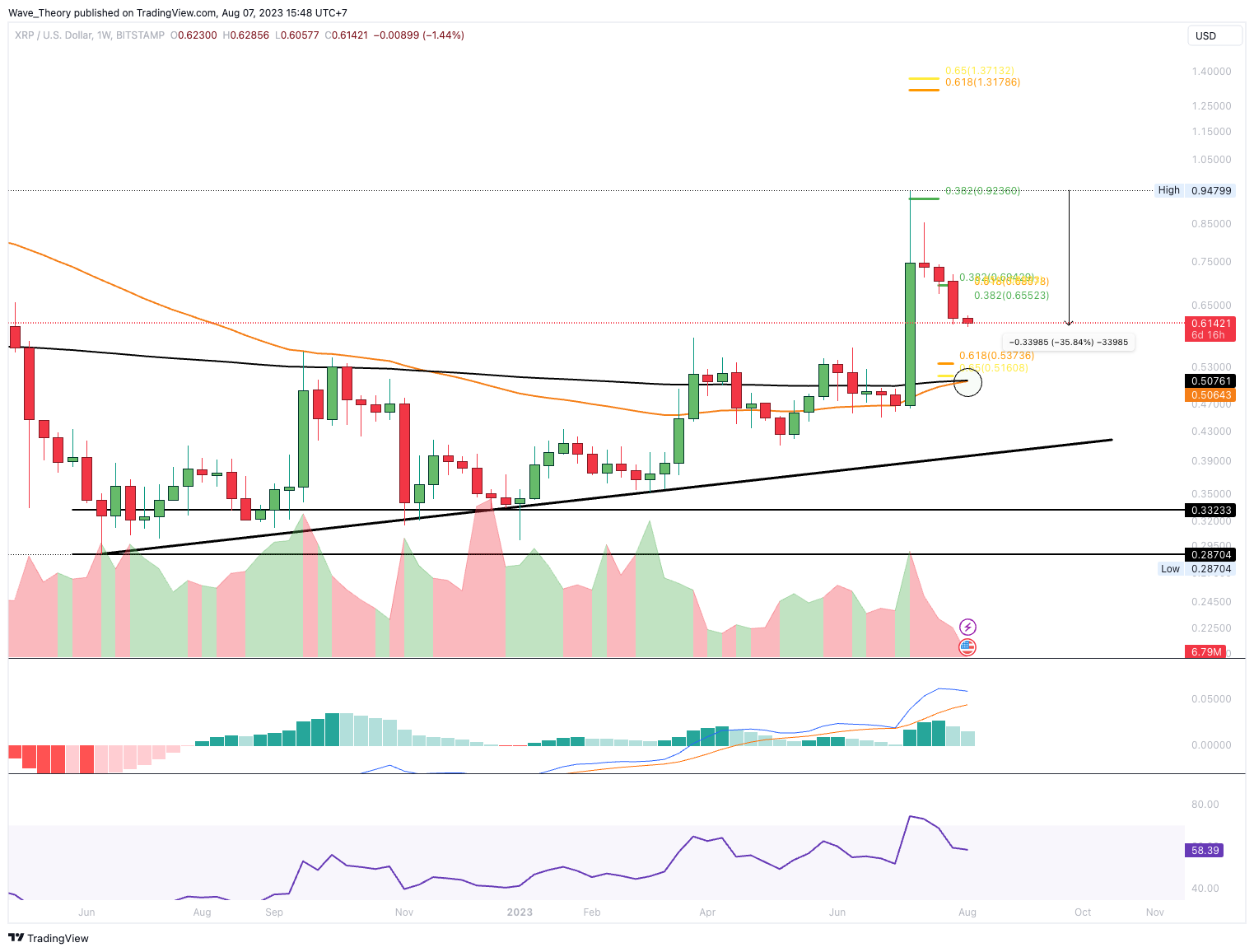 Im Monatschart schloss der XRP Kurs unter dem 0,382 Fib Niveau